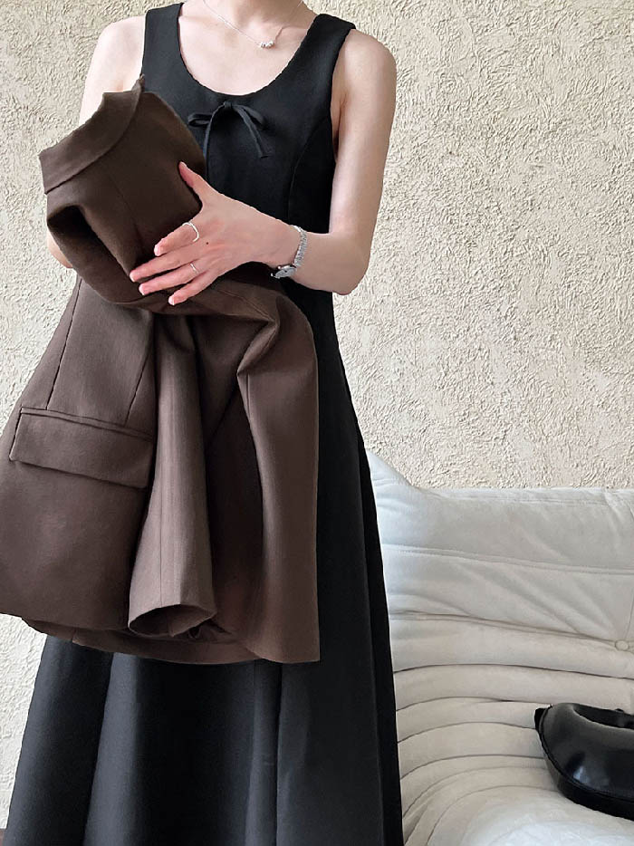 シアースリーブ ドッキングシャツ ボウタイシャツブラウス