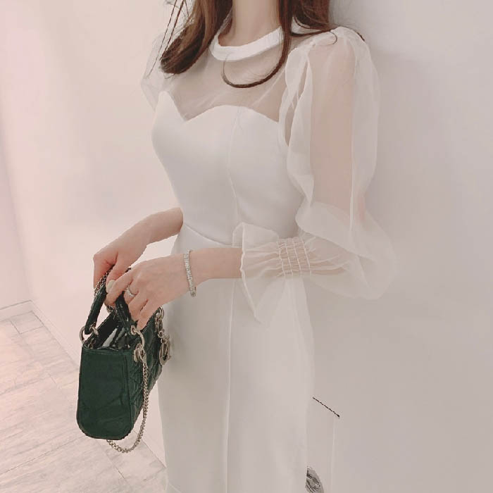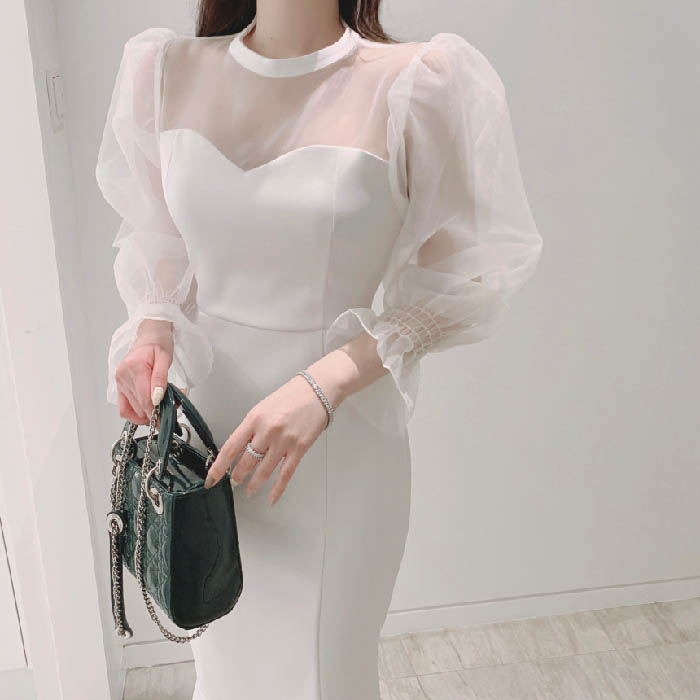 シアースリーブ ドッキングシャツ ボウタイシャツブラウス
