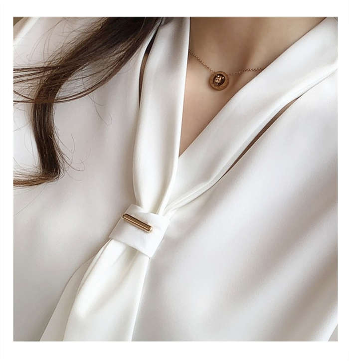 シアースリーブ ドッキングシャツ ボウタイシャツブラウス