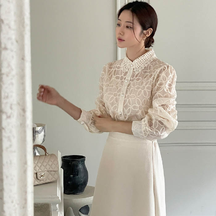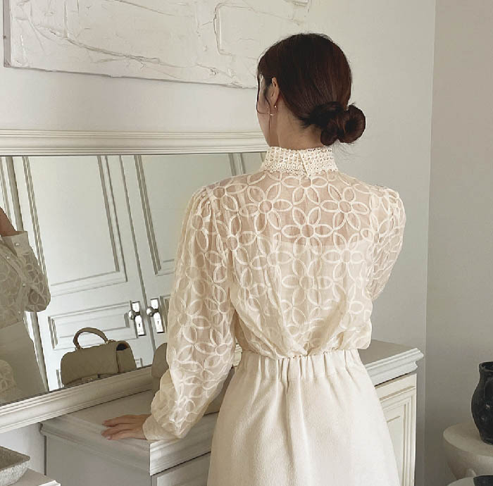 シアースリーブ ドッキングシャツ ボウタイシャツブラウス
