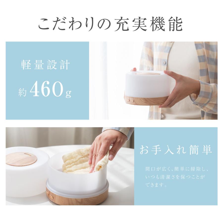 【8色のLED付き軽量設計】8色のLEDイルミネーションお好みの1色点灯と8色が自動で切り替わるグラデーションモード。リラックスできる空間を演出し、潤いながら間接照明も楽しめます。お手入れが手軽で、毎日清潔な状態でお使い頂くことができます。