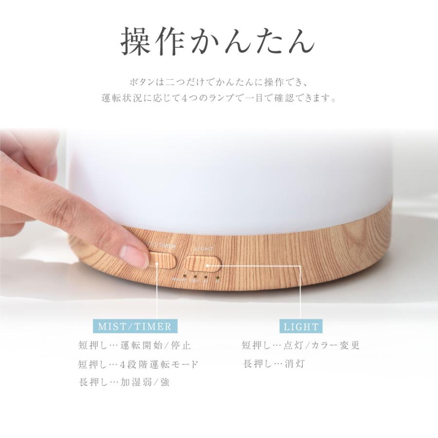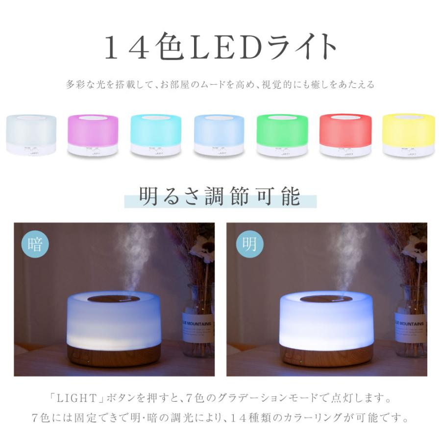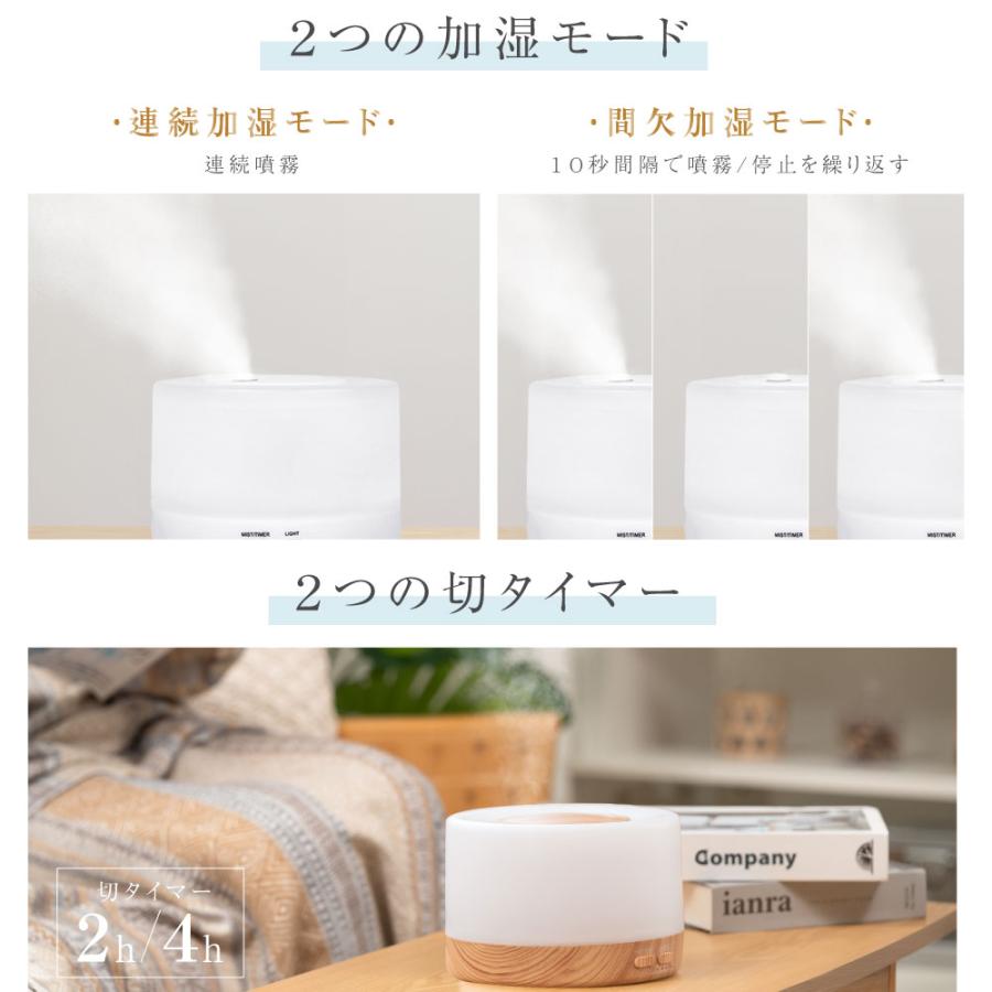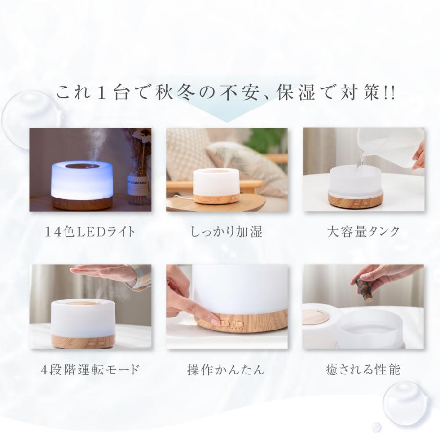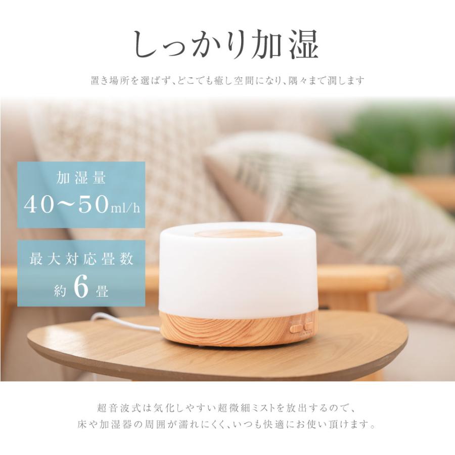 超音波式 加湿器 卓上加湿器 500ml アロマディフューザー ホワイトノイズ メロディ付 LEDライト7色 上部給水 タイマー 小型 加湿器 おしゃれ 空焚き防止 静音 肌乾燥