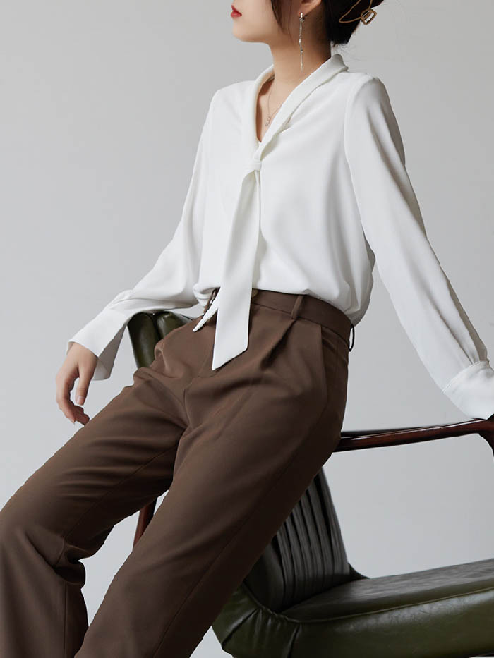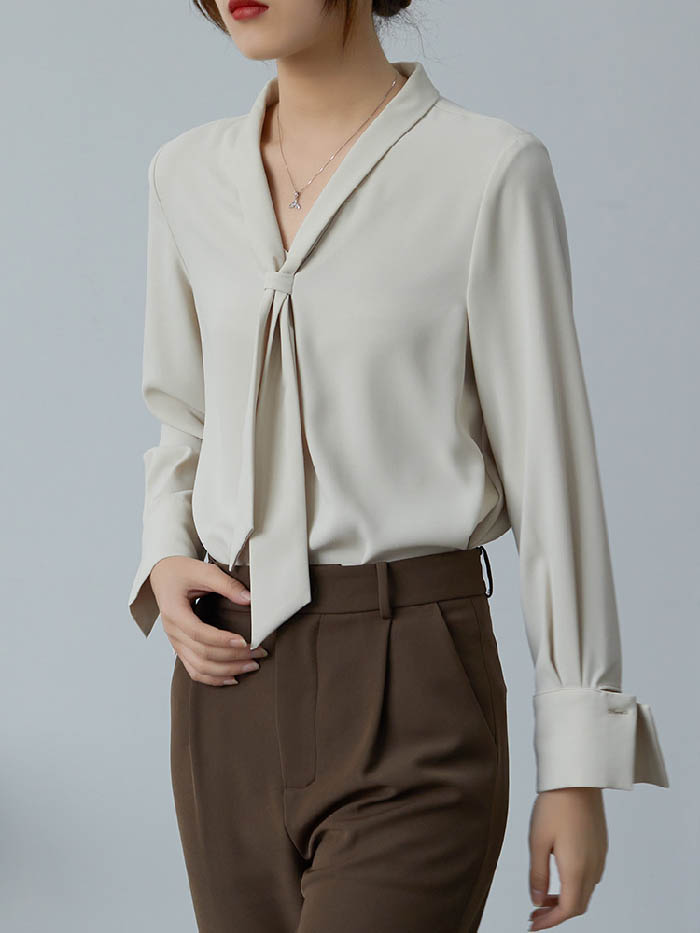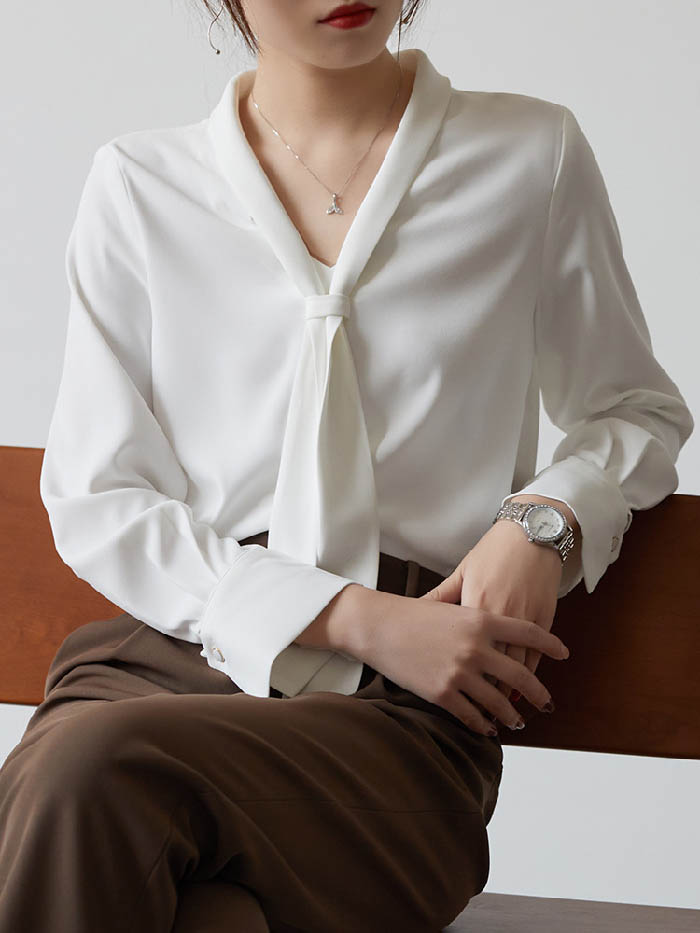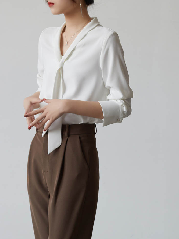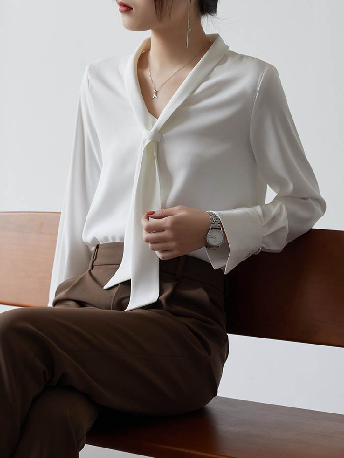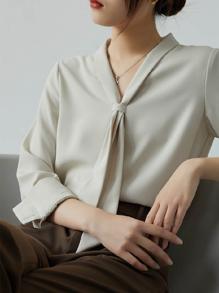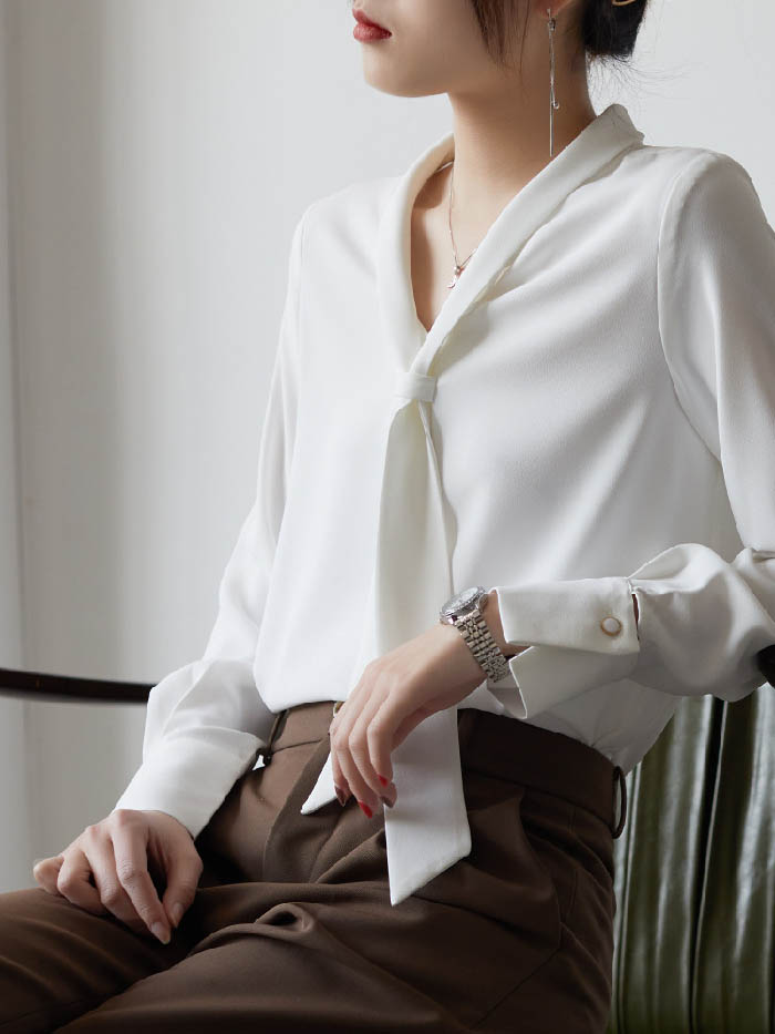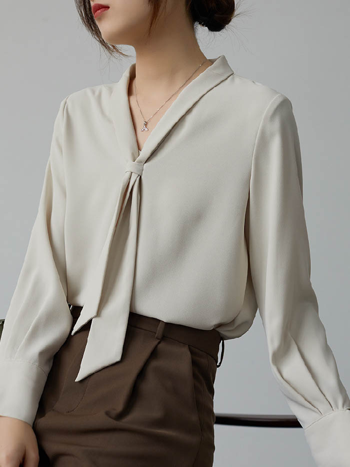 シアースリーブ ドッキングシャツ ボウタイシャツブラウス