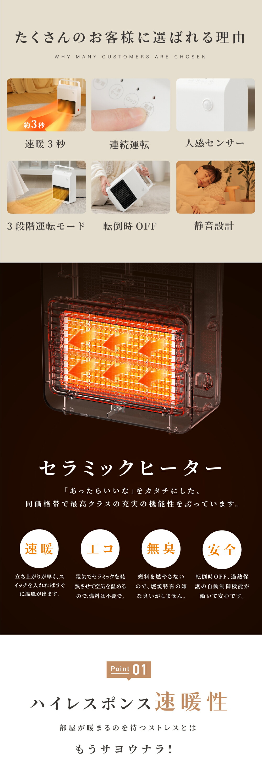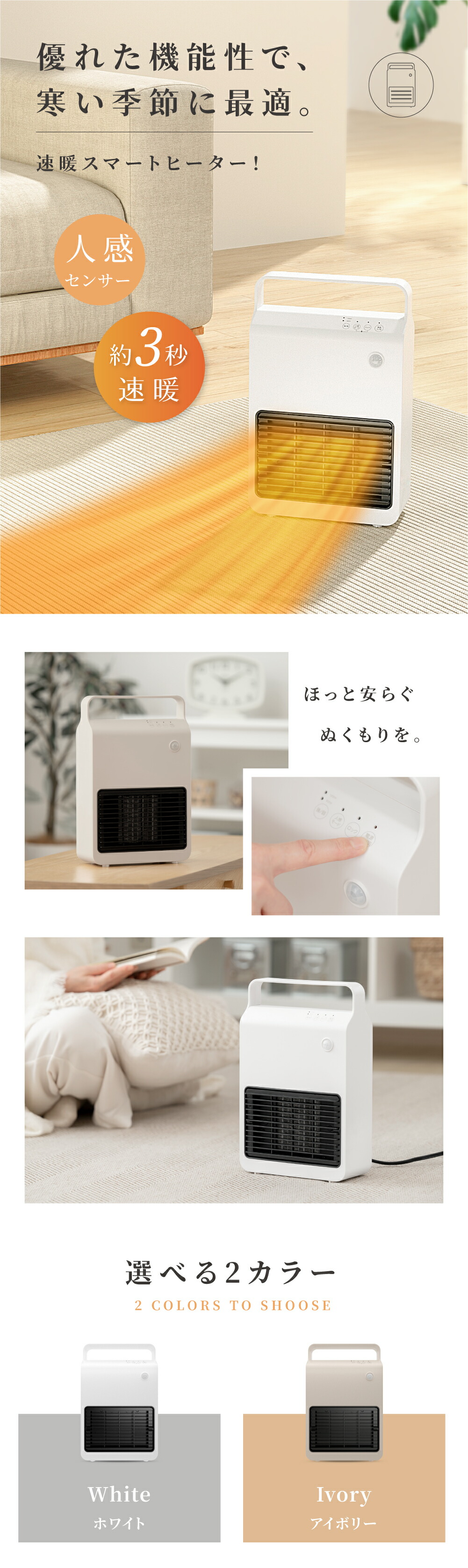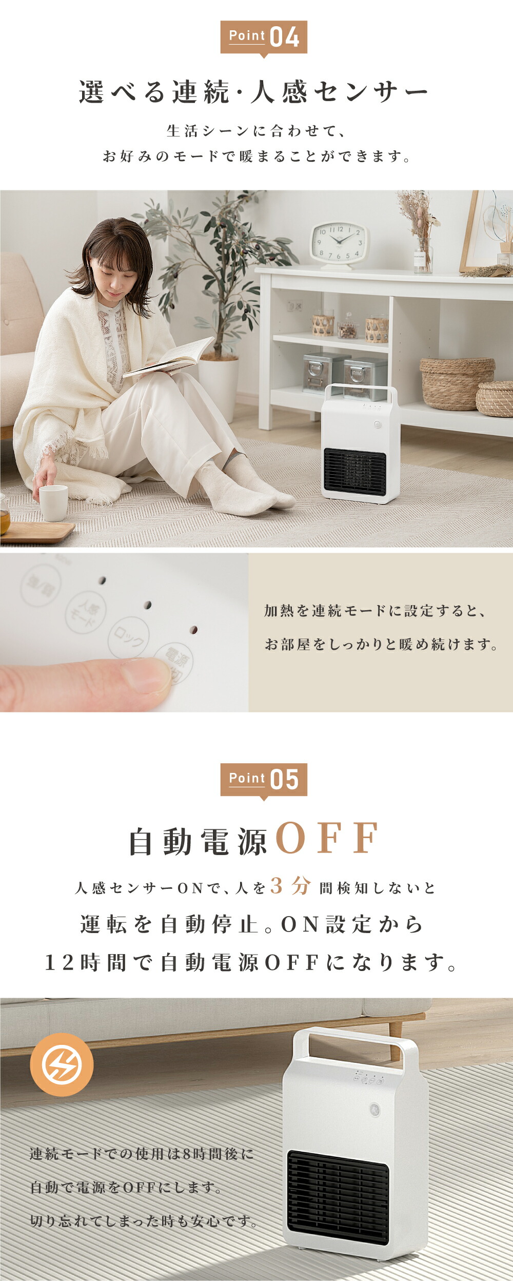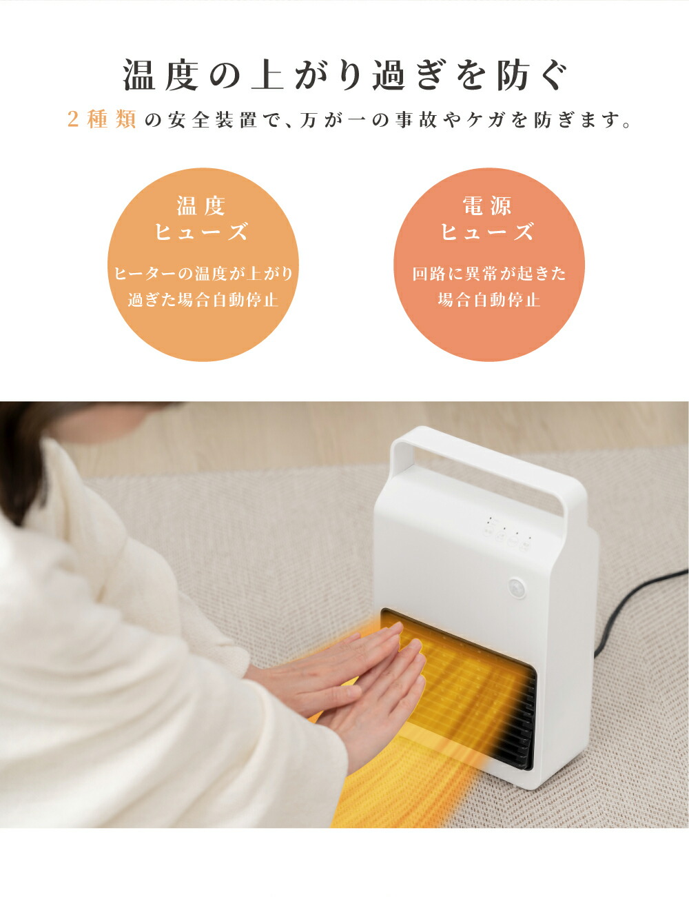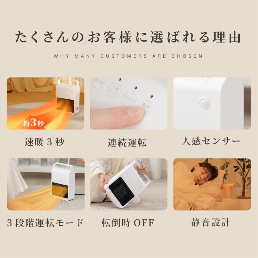 セラミックヒーター ヒーター 小型 多機能 人感センサー 自動電源OFF 静音 3段階モード 温度ヒューズ 送風角度調整 連続運転 軽量 足元暖房