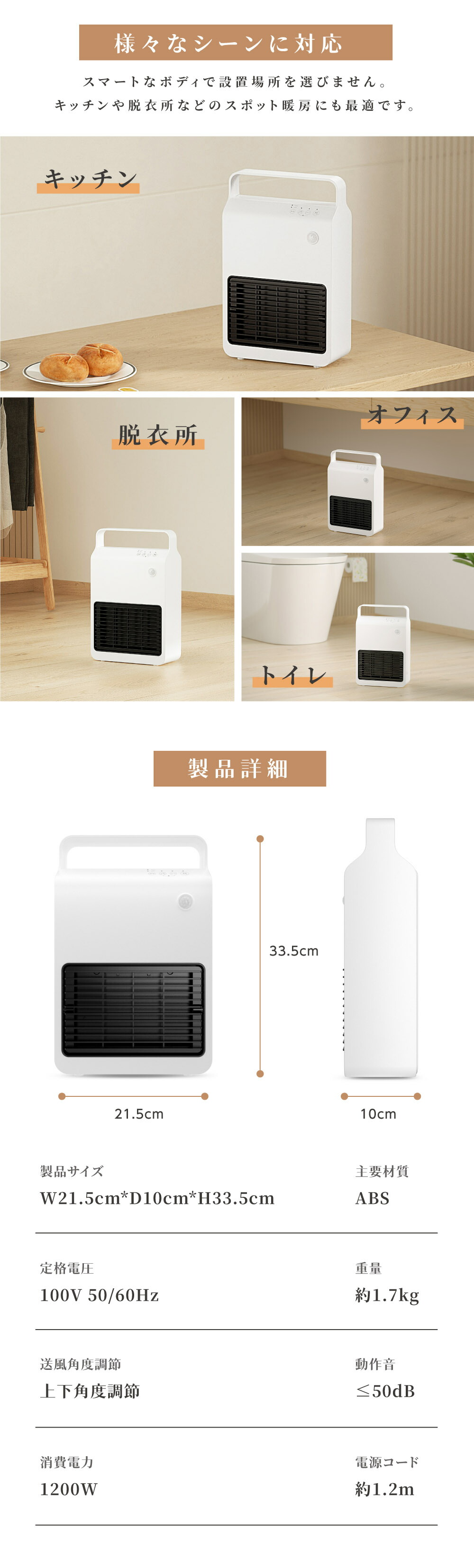 【製品仕様】サイズ:約W21.5xD10xH33.5cm /材質:ABS / 定格電圧:AC100V 50/60Hz / 消費電力:1200W/(最大) / 重量:約1.7kg / 電源コード長さ:約1.2m
