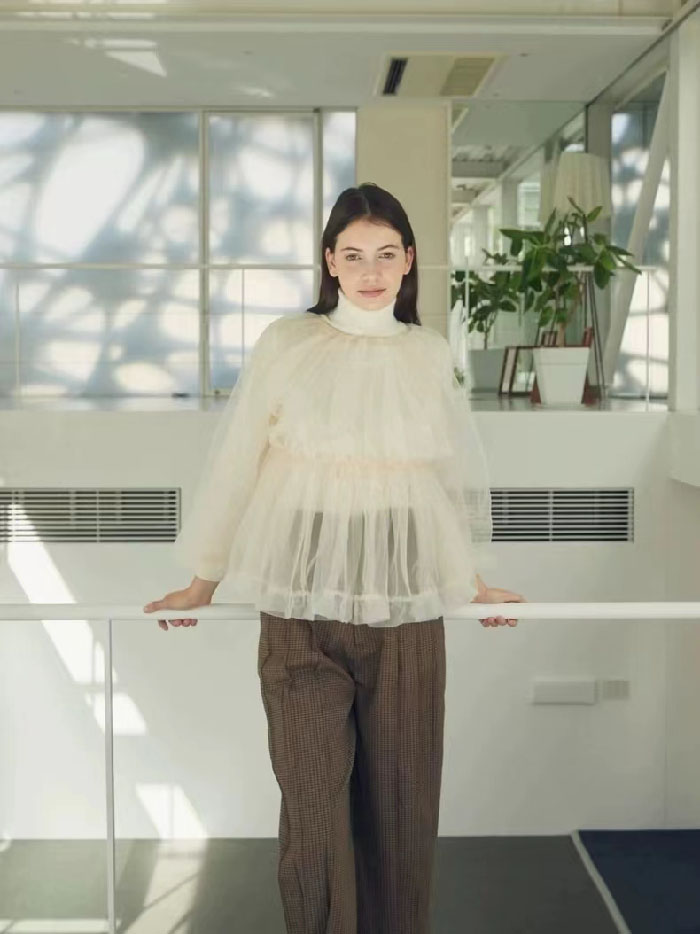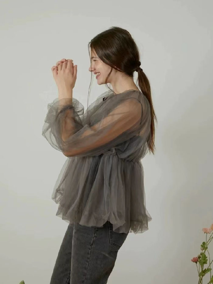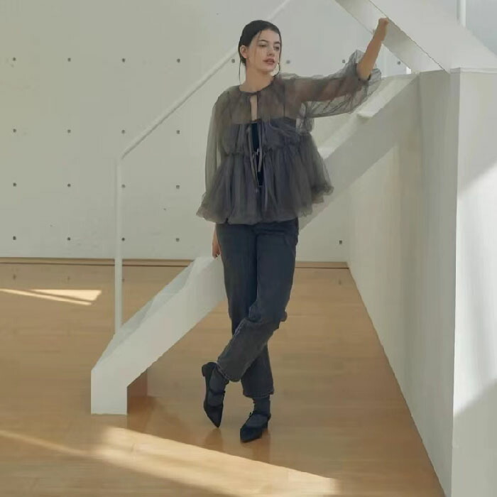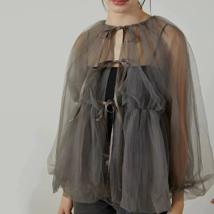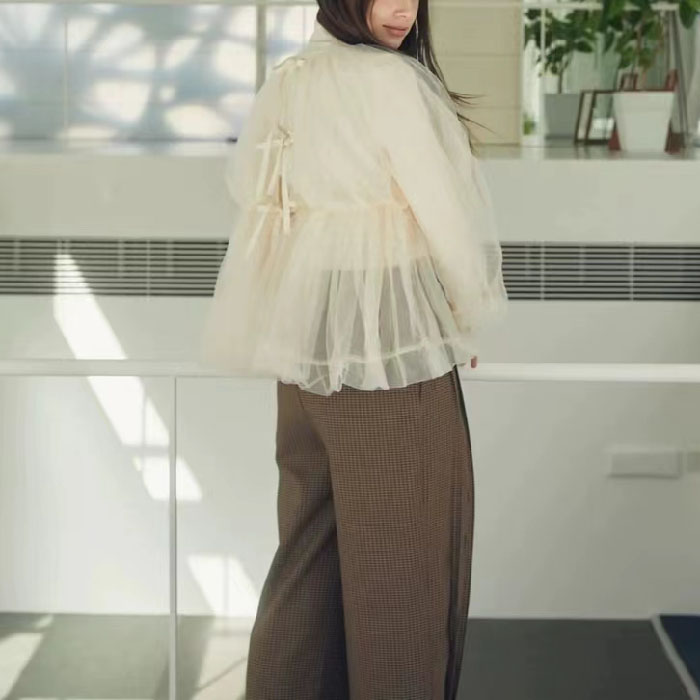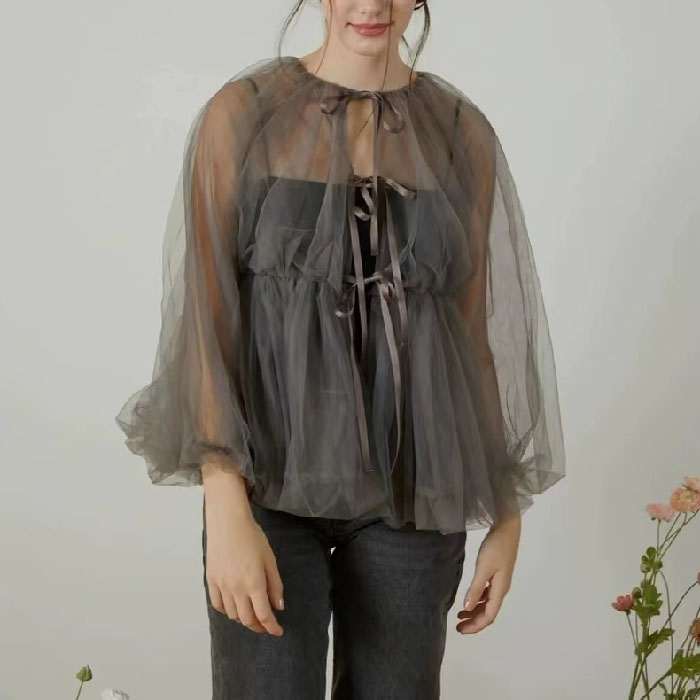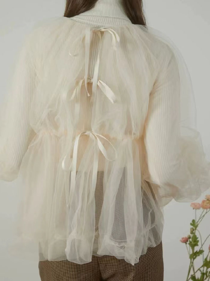 シアースリーブ ドッキングシャツ ボウタイシャツブラウス