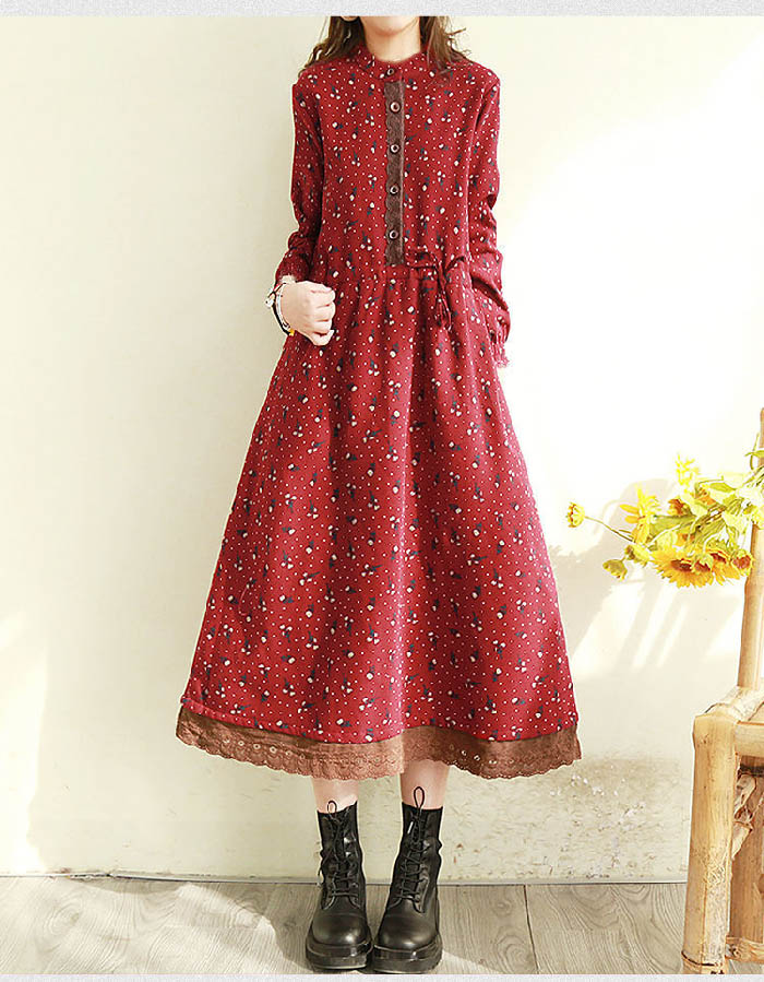 ワンピース 花柄 長袖 シャツワンピー