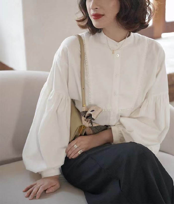 シアースリーブ ドッキングシャツ ボウタイシャツブラウス