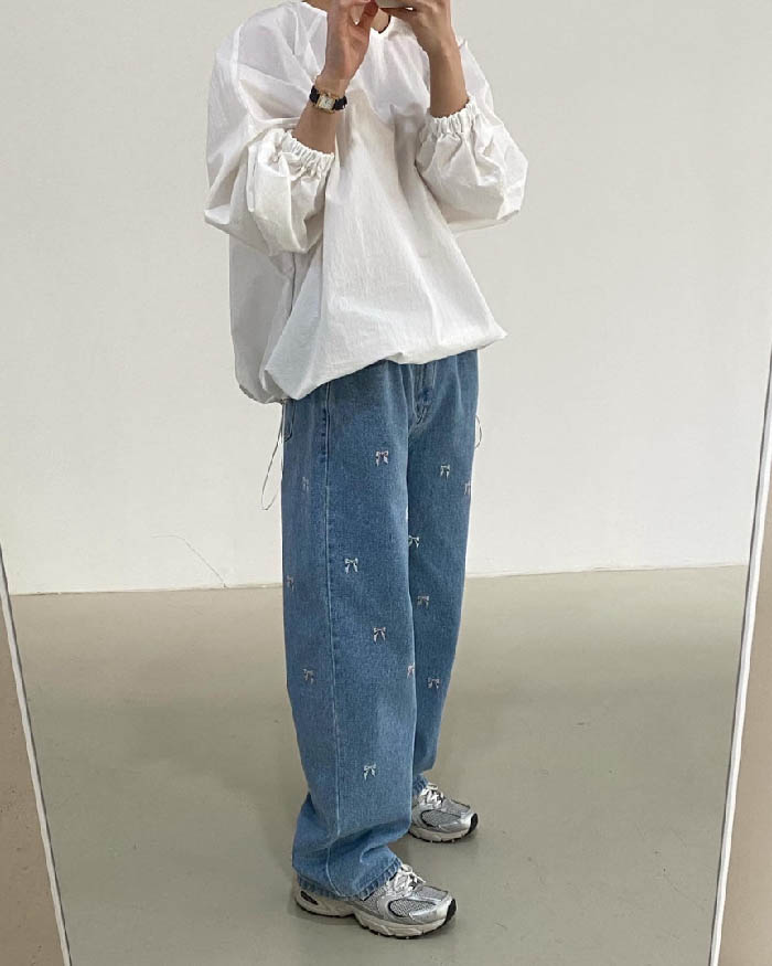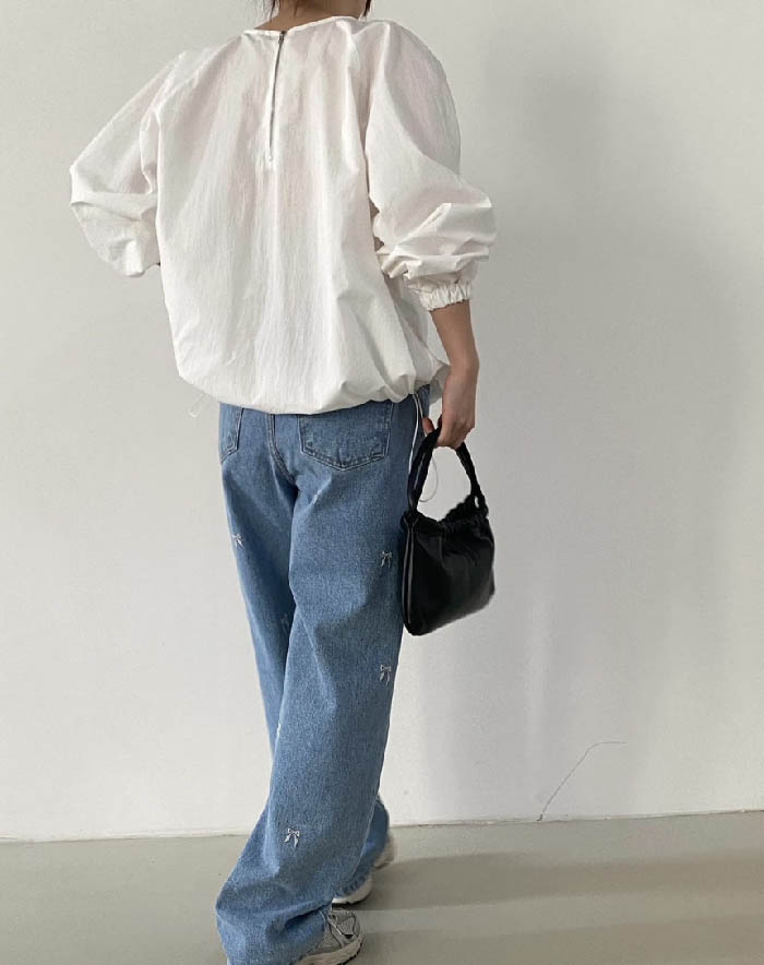 シアースリーブ ドッキングシャツ ボウタイシャツブラウス