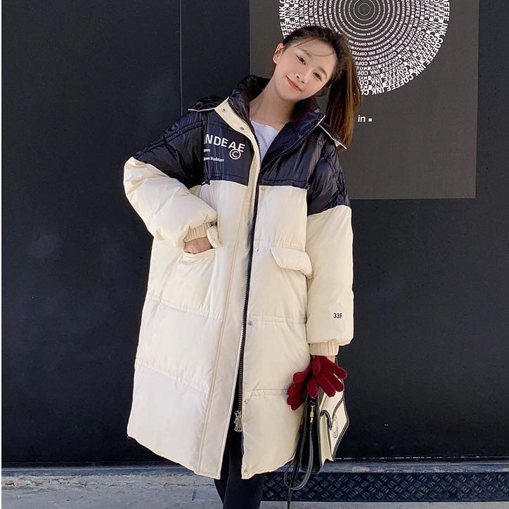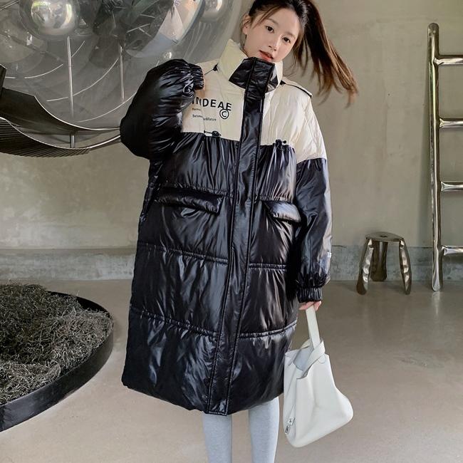 バイカラー光沢 ロングダウンコートレディースファッション コート ジャケット