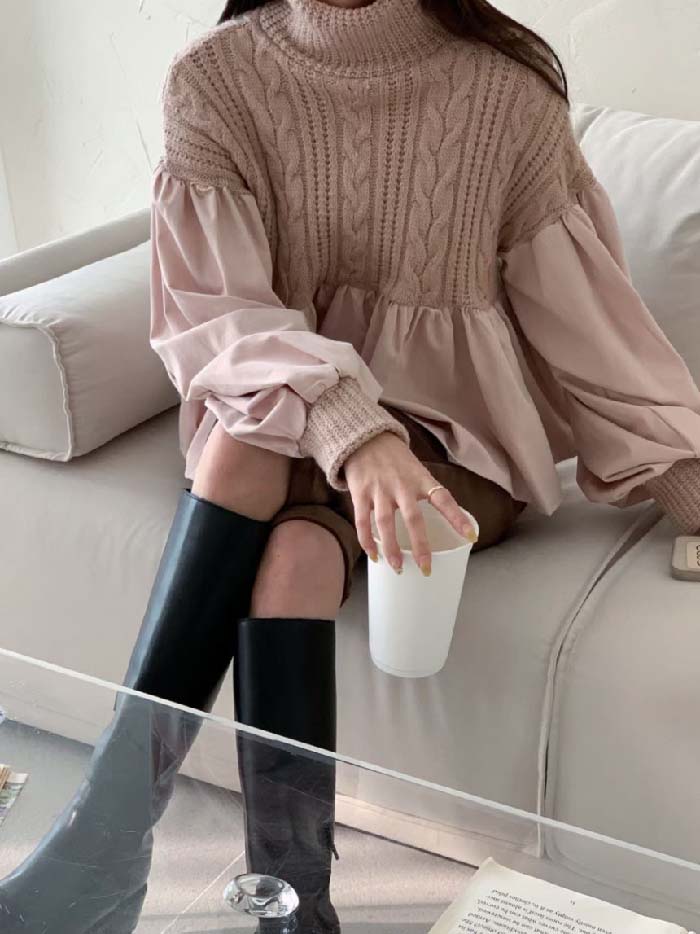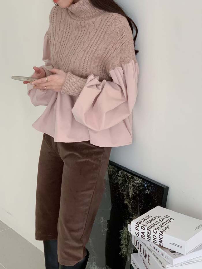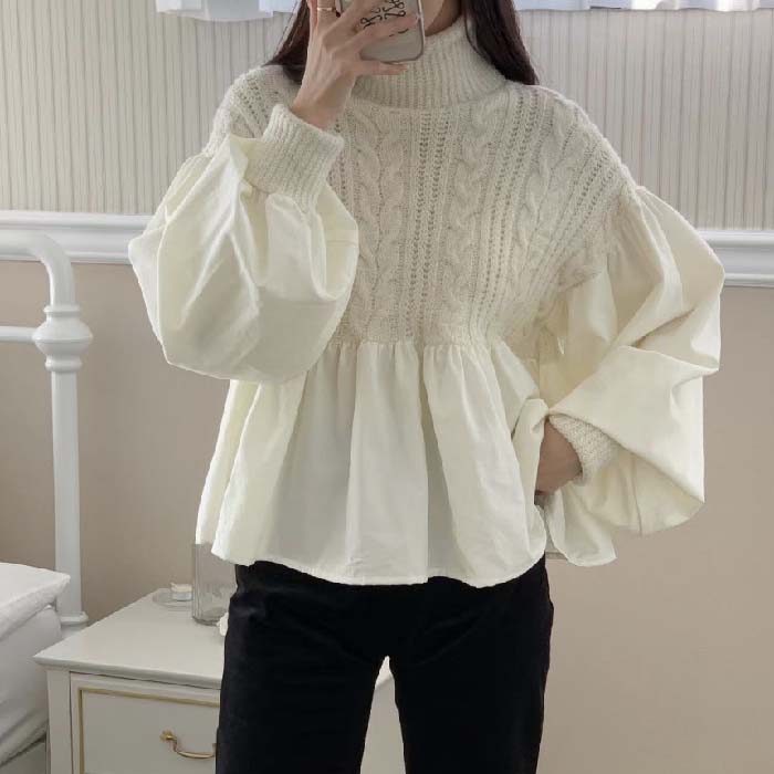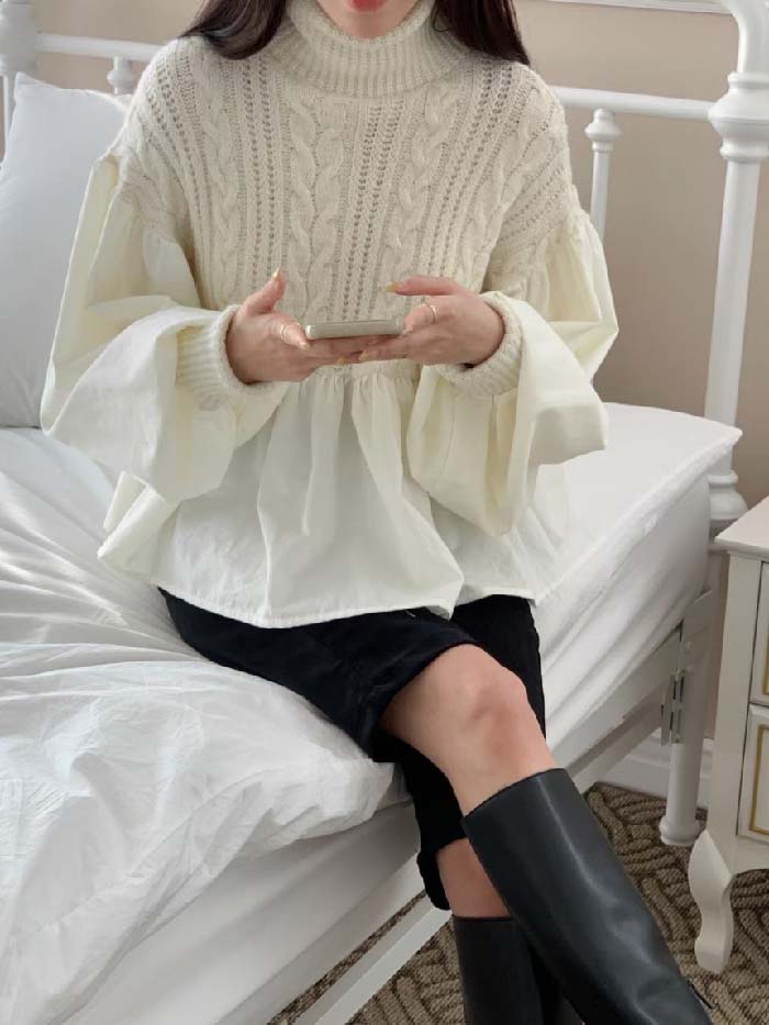 シアースリーブ ドッキングシャツ ボウタイシャツブラウス