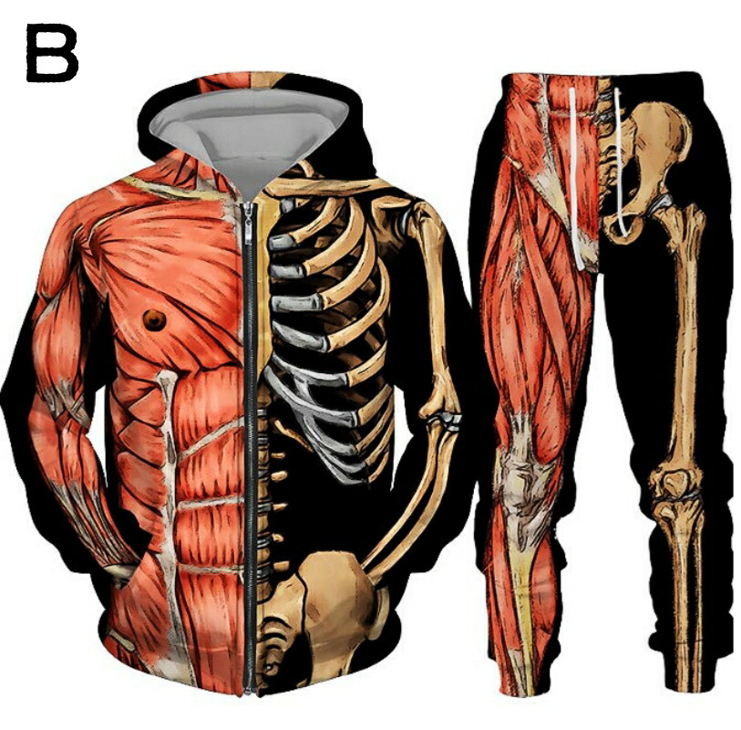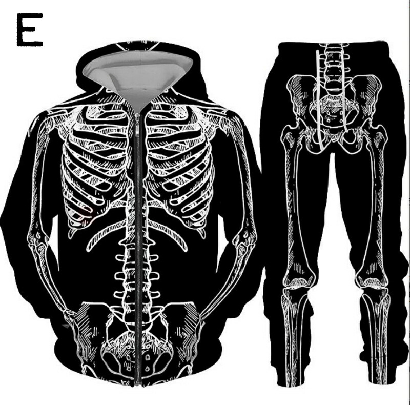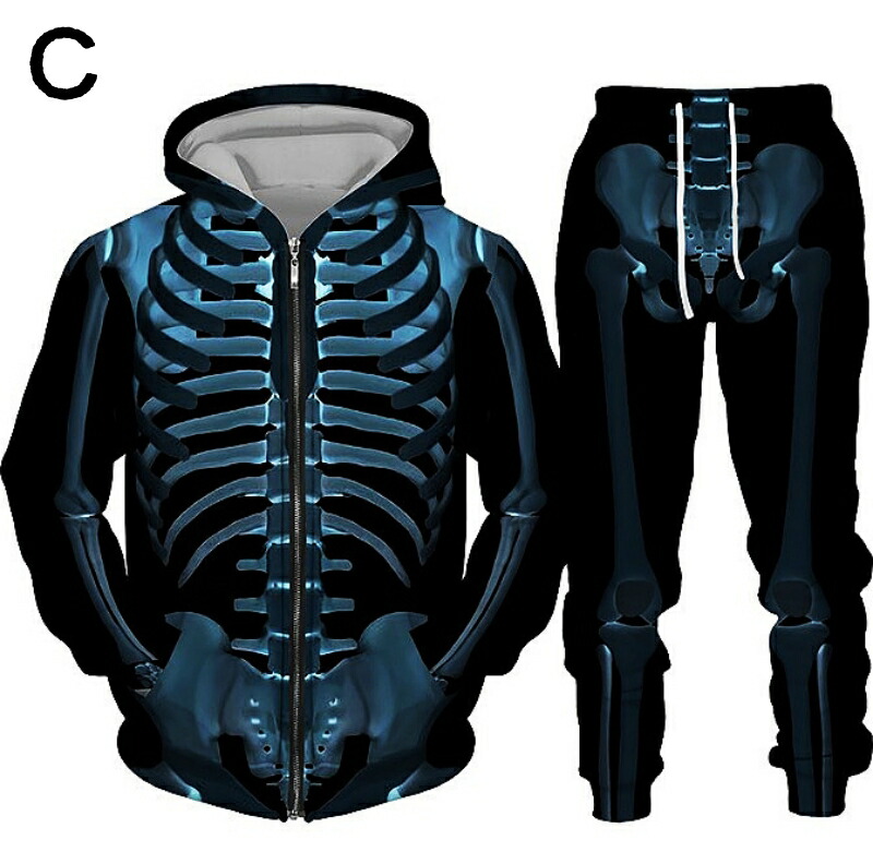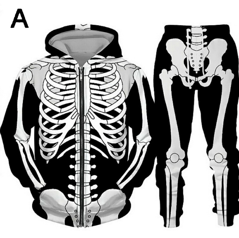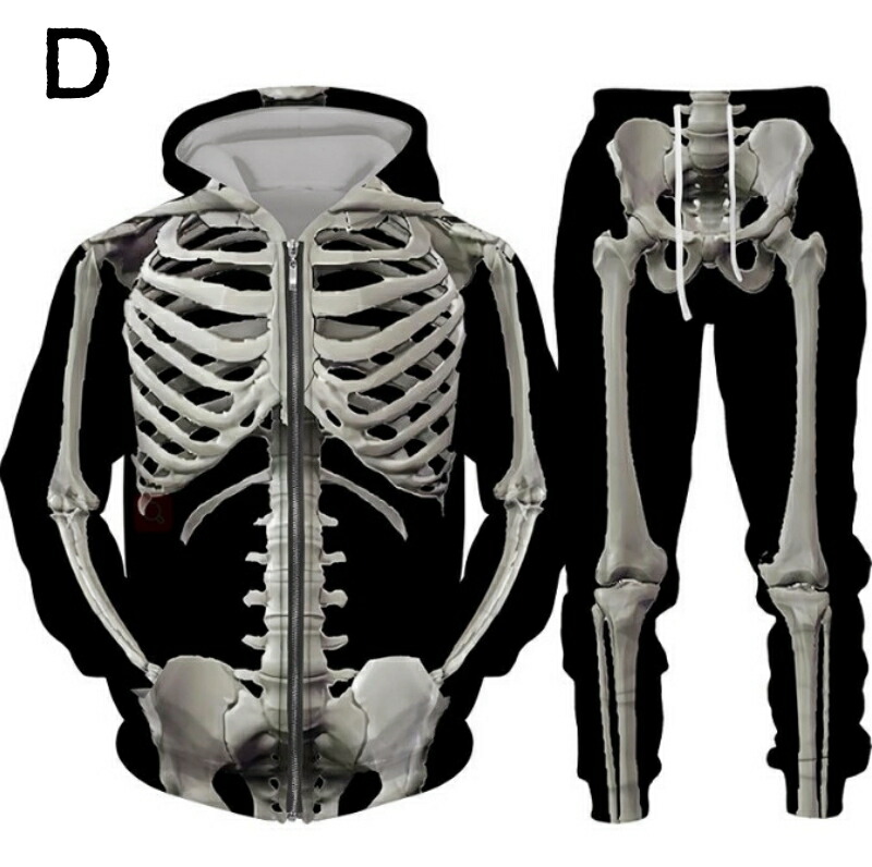 ジャージ 上下 ジップアップ メンズ フードパーカー 3D セットアップ どくろ柄 ハロウィン プルオーバー 長袖 吸汗 ゆったり 柔らかい 面白い