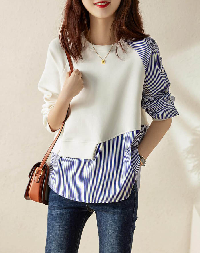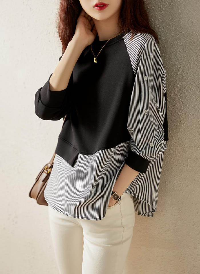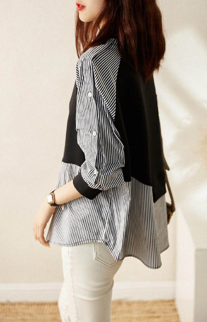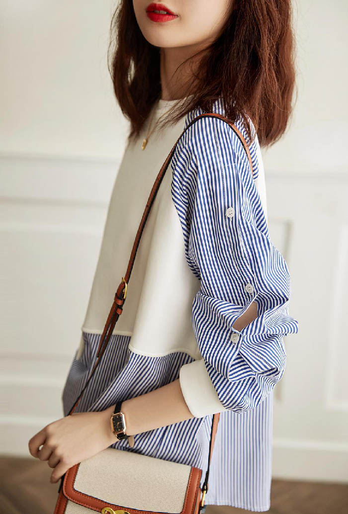 シアースリーブ ドッキングシャツ ボウタイシャツブラウス