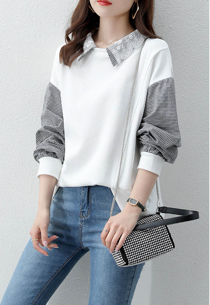 シアースリーブ ドッキングシャツ ボウタイシャツブラウス