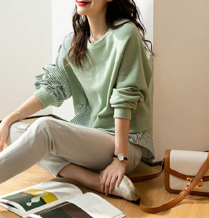 シアースリーブ ドッキングシャツ ボウタイシャツブラウス