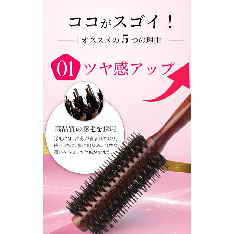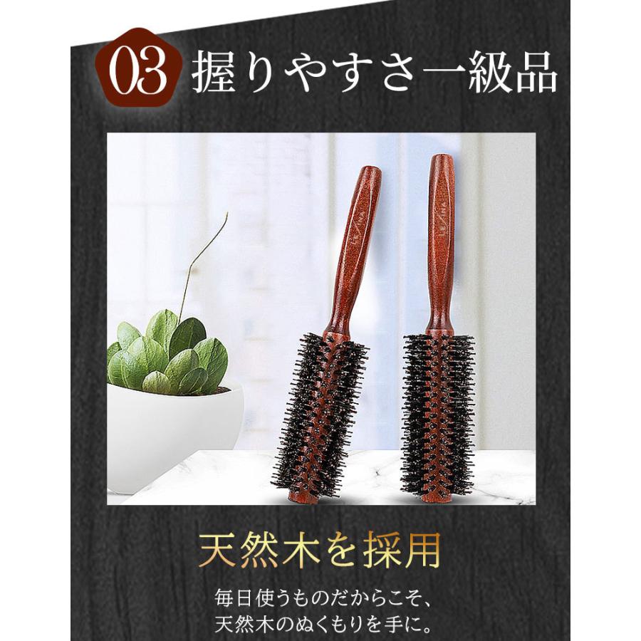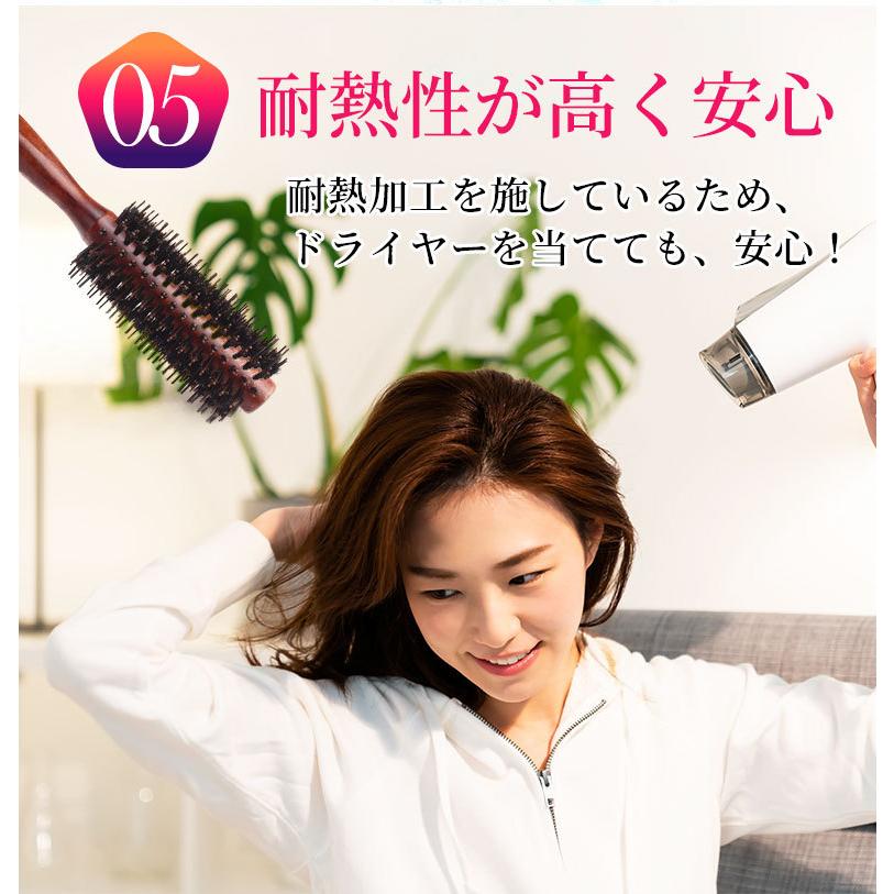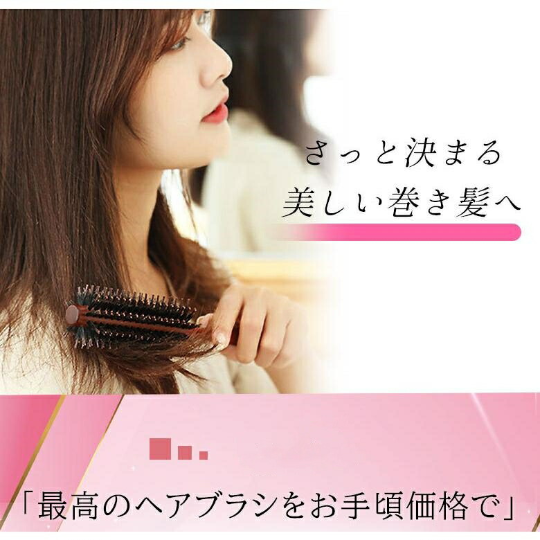ヘアブラシ 豚毛 ロールブラシ 木製