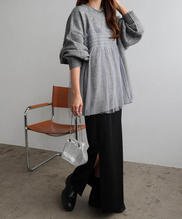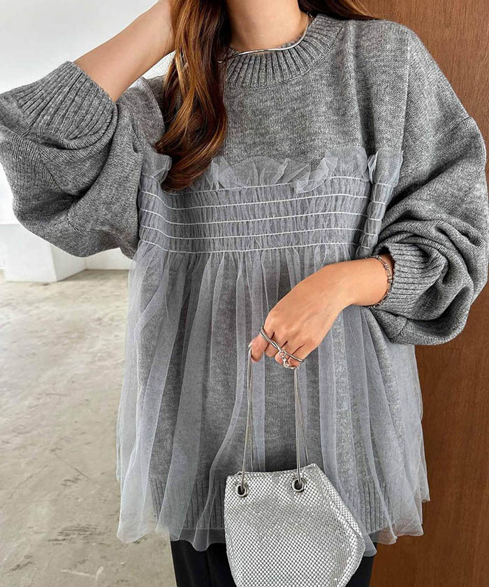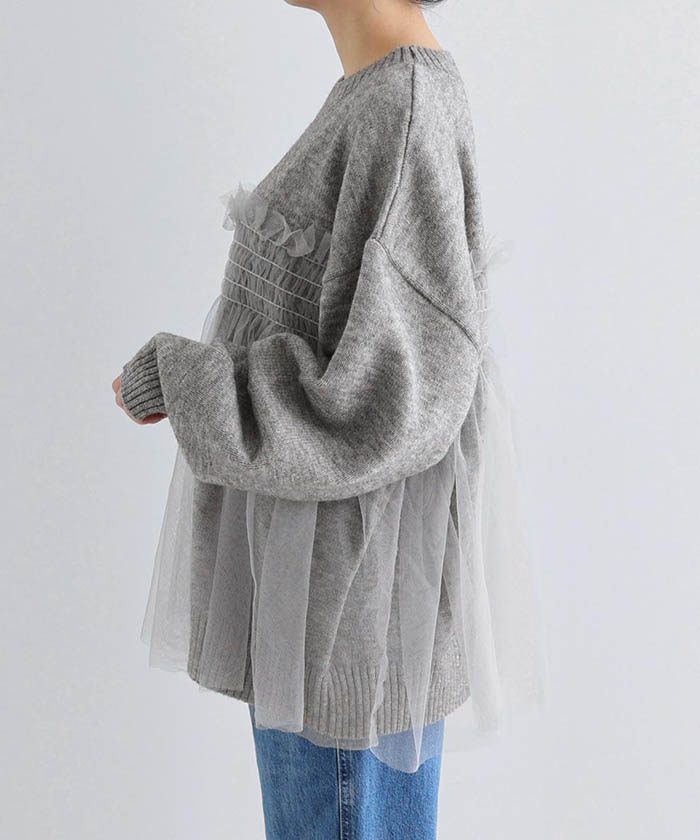シアースリーブ ドッキングシャツ ボウタイシャツブラウス
