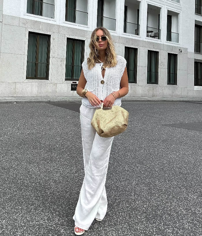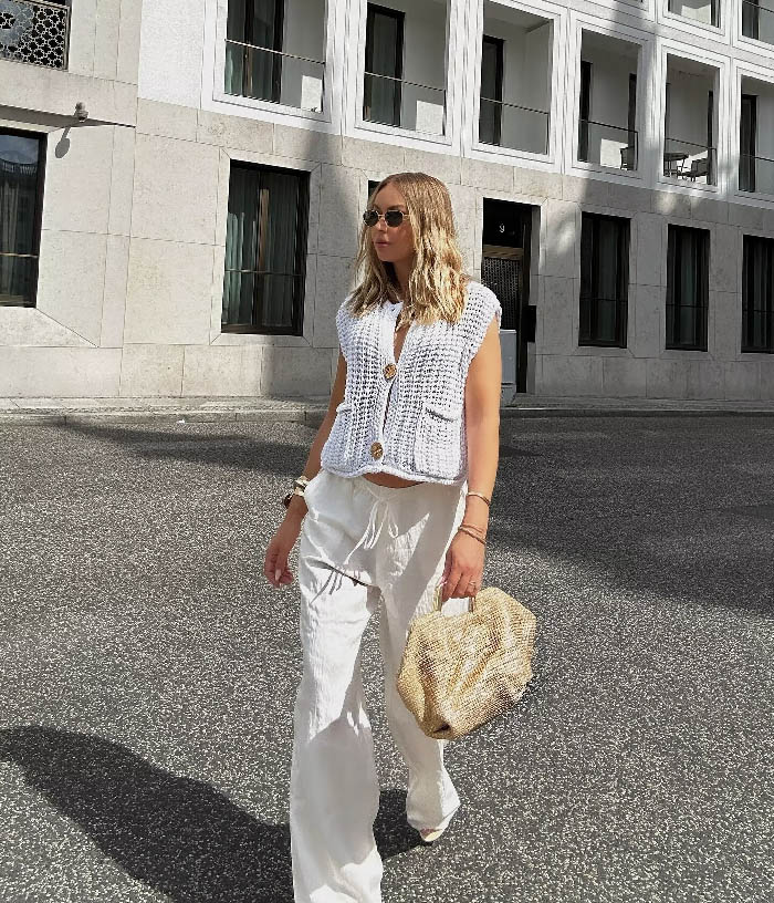 ニットベスト レディース 春 秋 透か