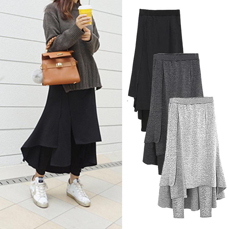 スカートとレギンスの一体型ボトムス 穿