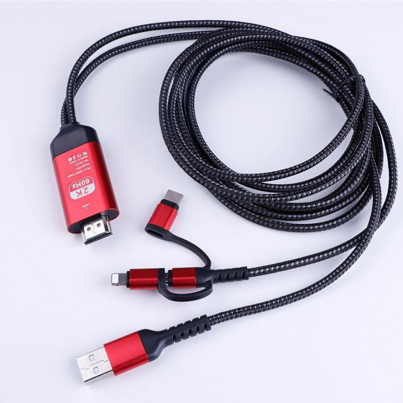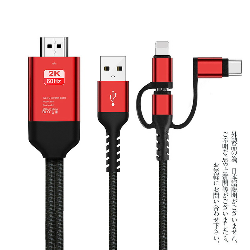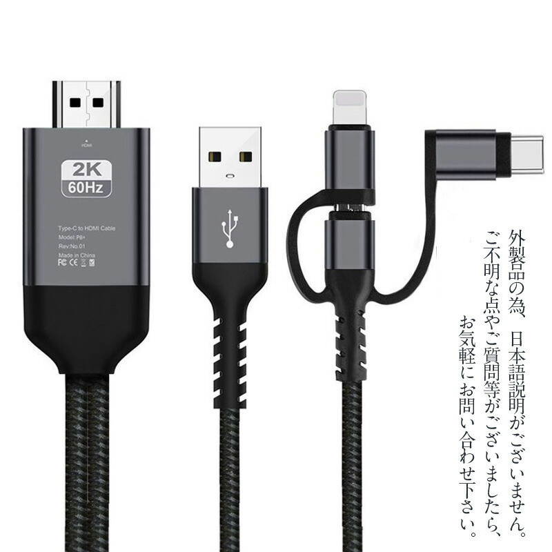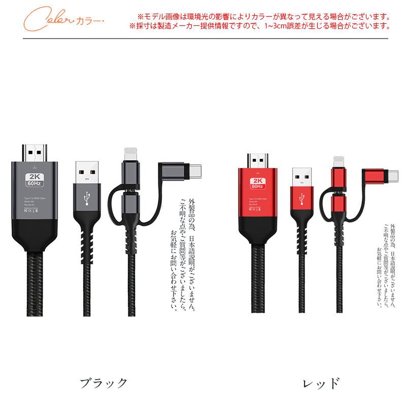 ミラーリングケーブル HDMI変更ケーブル ミラーキャスト Micro Type-C iPhoneコネクター付き ストリーミング端末 テレビにスマホの画面を映す