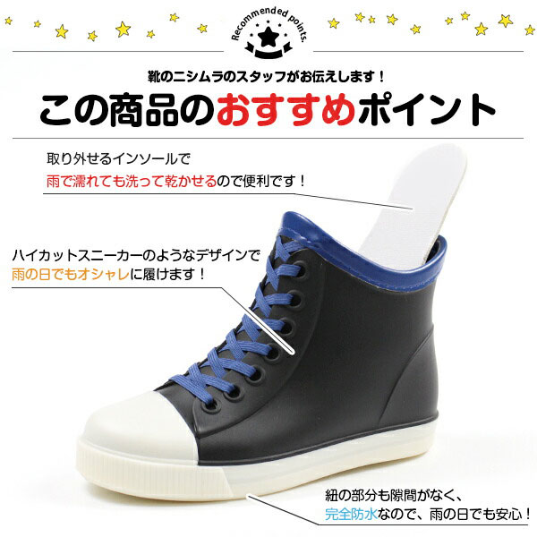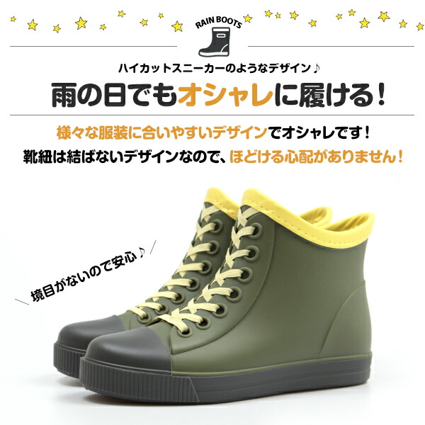 ・ハイカットスニーカーのようなデザインのレインブーツで、雨の日もオシャレに履けます!