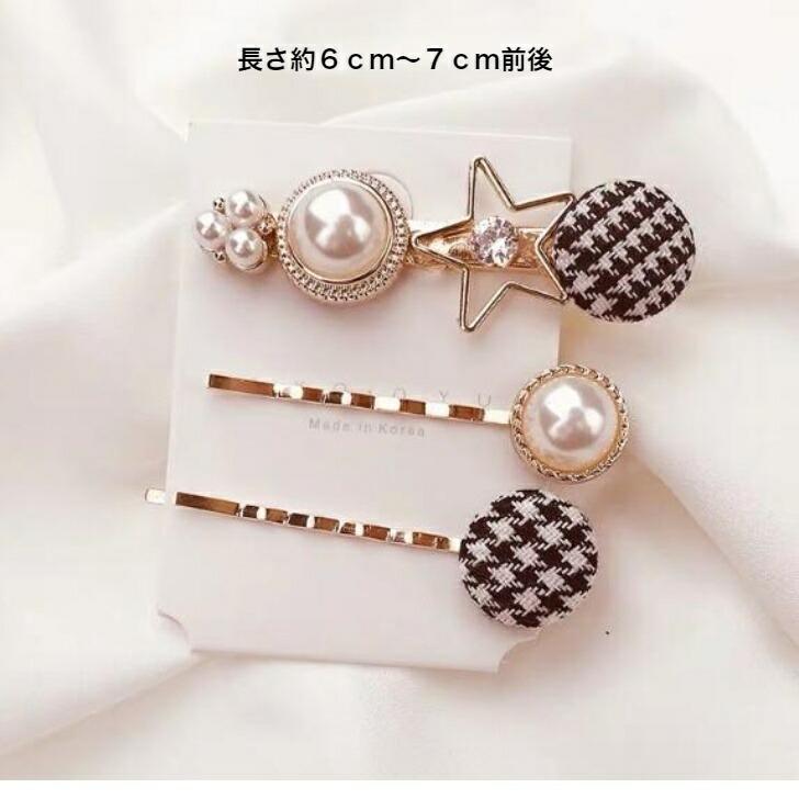 ヘアピンパール&ブラックヘアピン3点セットパールビーズゴールド上品大人大人クロチェックジュエリー アクセサリー レディースジュエリー アクセサリー ヘアアクセサリー ヘアピン