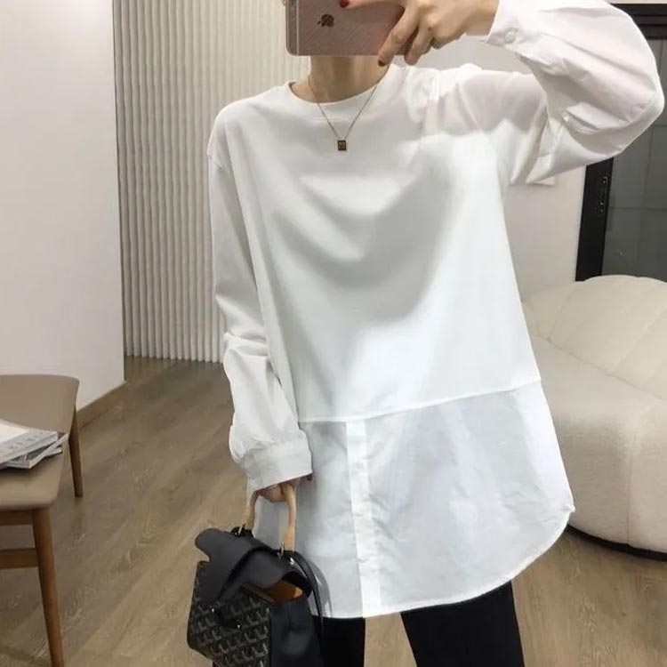 シアースリーブ ドッキングシャツ ボウタイシャツブラウス