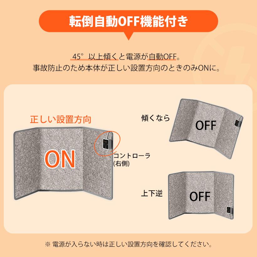パネルヒーターを倒しても、傾きを感知しすぐに電源OFF!