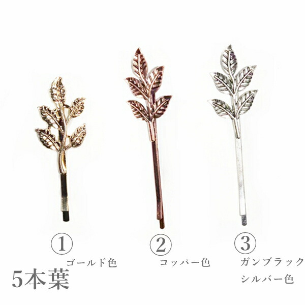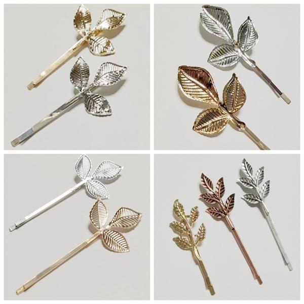 葉っぱ ヘアピン 5本葉 3本葉 レディース ヘアアクセサリー ピン止め 大人 前髪 ゴールド シルバー