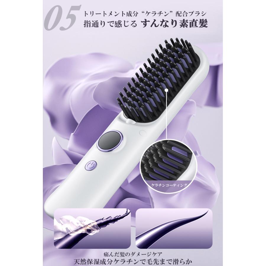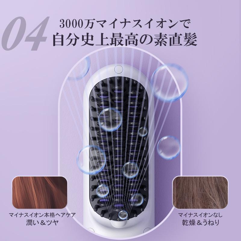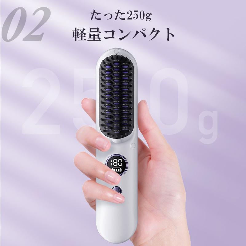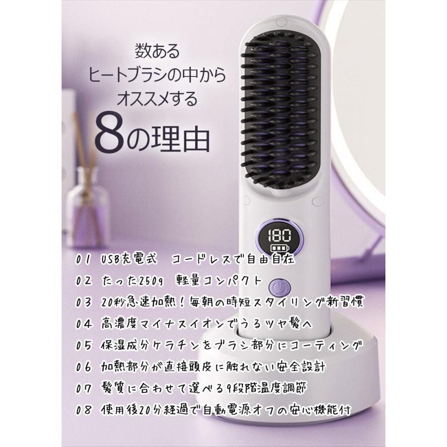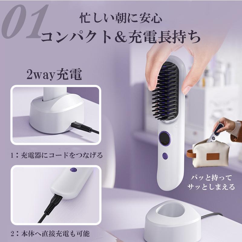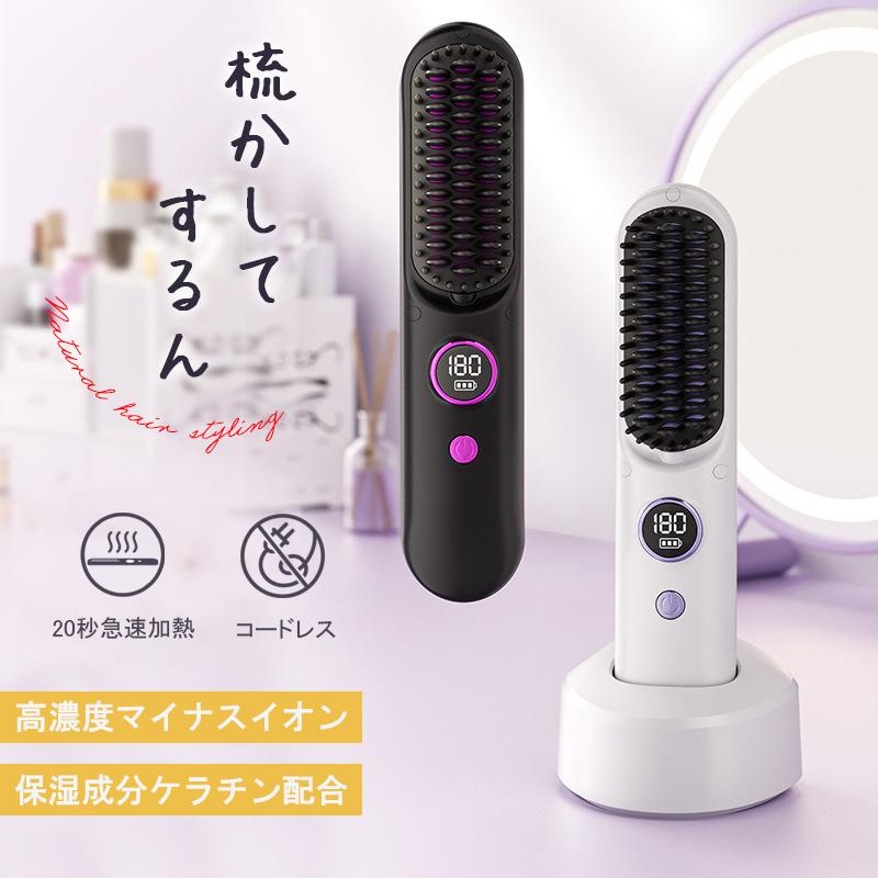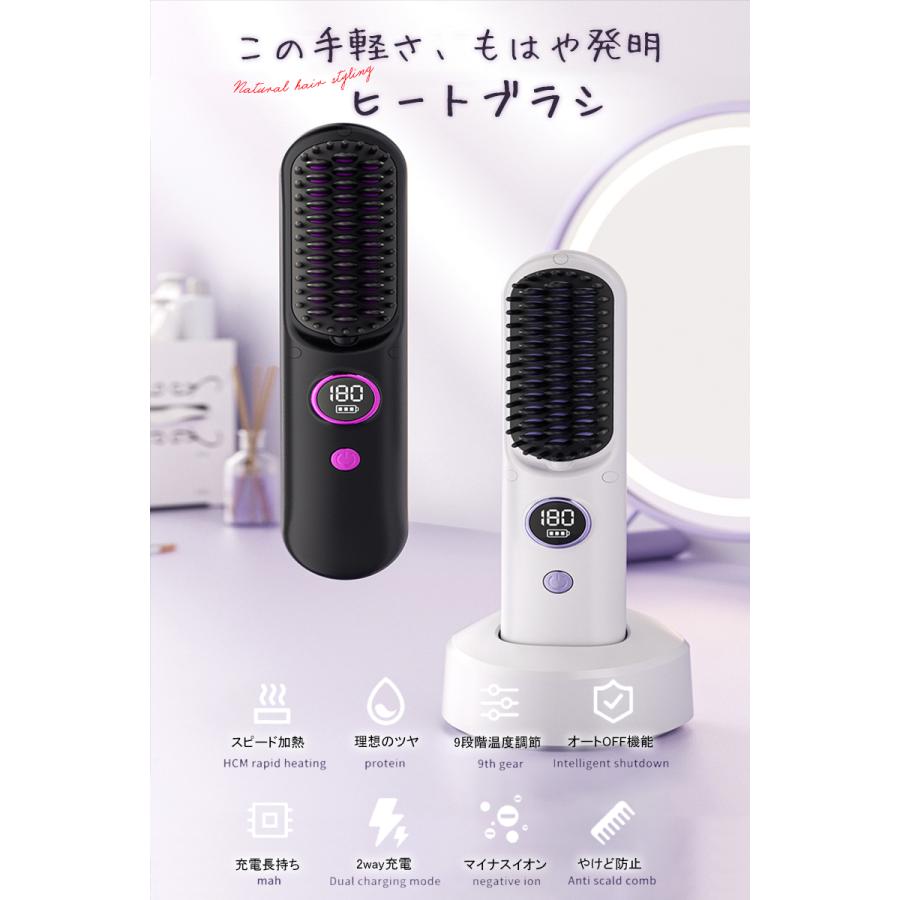 ヘアアイロン ストレートアイロン ヘアアイロンブラシ コードレス スタンド付き ヒートブラシ マイナスイオン くせ毛 うねり USB充電式 携帯用 9段階温度調整