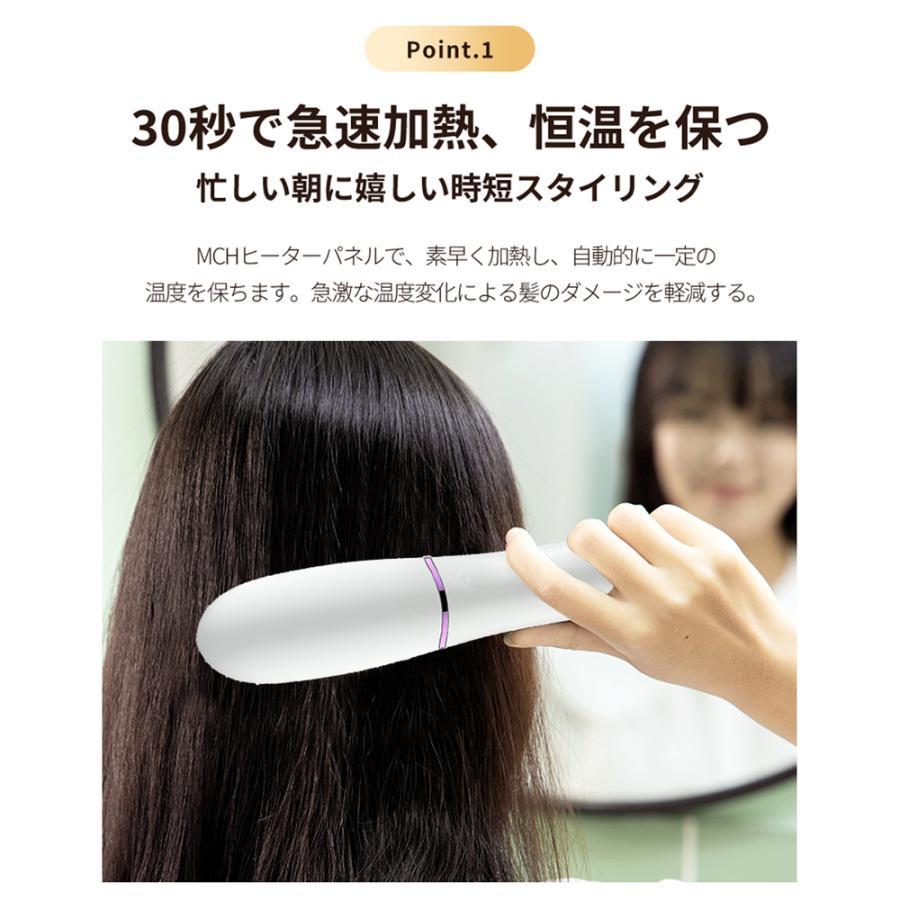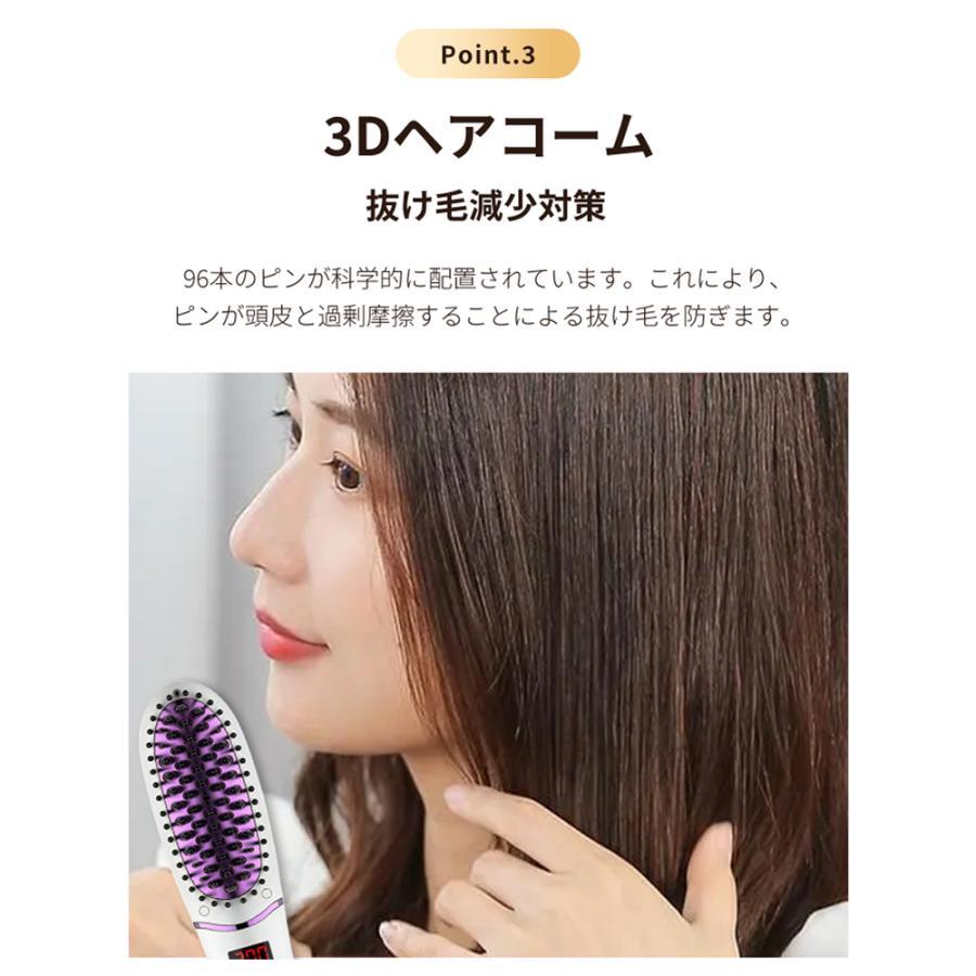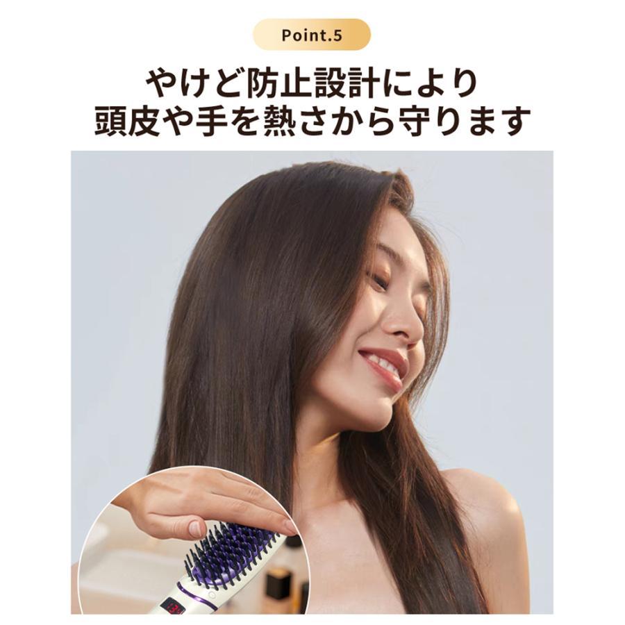 ヘアアイロン ストレートアイロン ブラシ型 高濃度マイナスイオン LEDディスプレイ 5段階温度調整 120~220℃ 30秒急速加熱 30min自動電源オフ 火傷防止