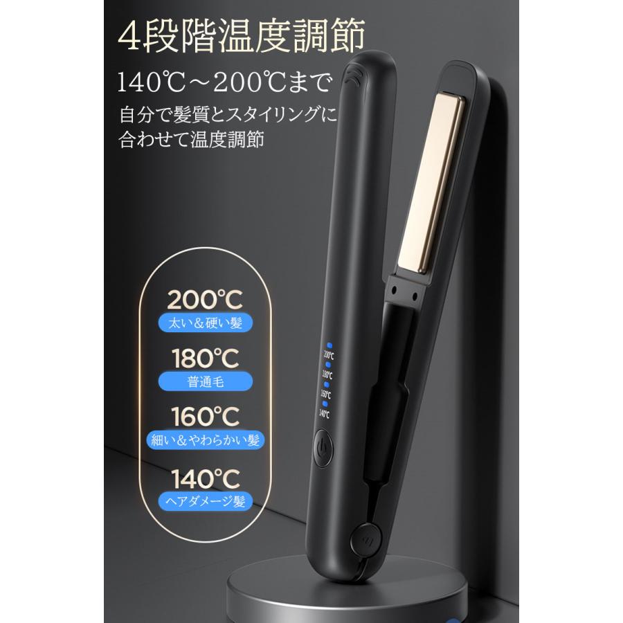 コードレスアイロン ヘアアイロン USB充電式 ストレート ミニ コンパクト カール 2way 持ち運び用 前髪 4段階温度調整 MAX200℃ 旅行