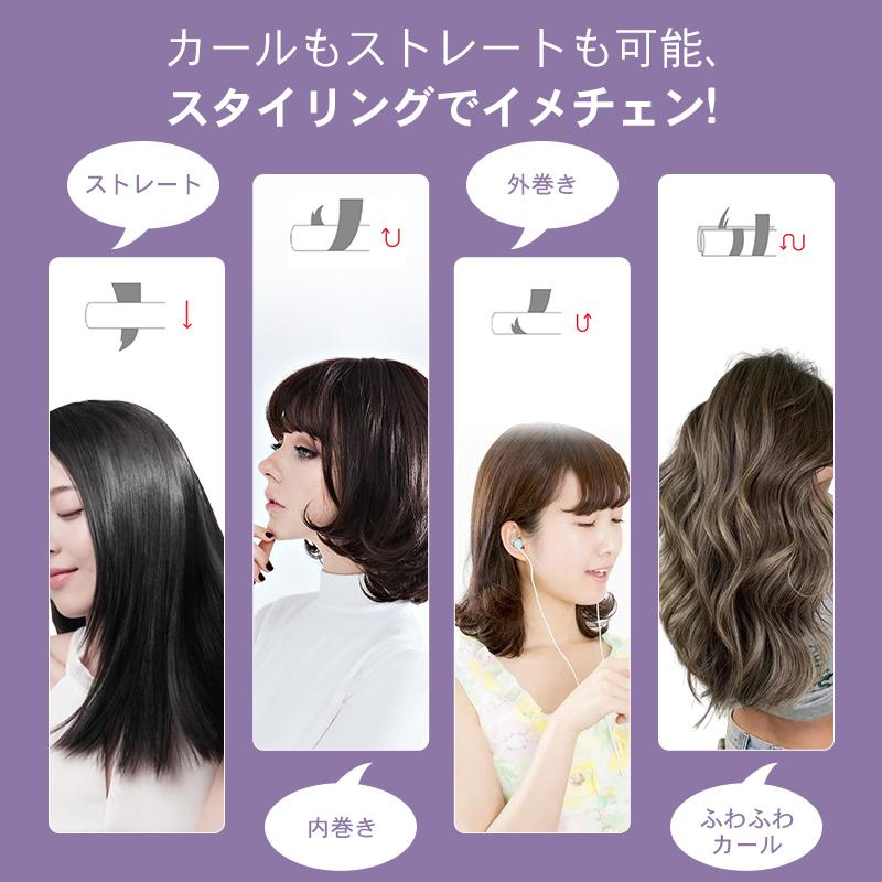 2WAY カール&ストレート:カールヘアとストレートヘアのどちらも楽しみたいという方にはこちらのヘアアイロンがおすすめです。このヘアアイロンがあれば、ヘアスタイルを自由に組み合わせて、カールでもストレートでも簡単に作ることができます。
