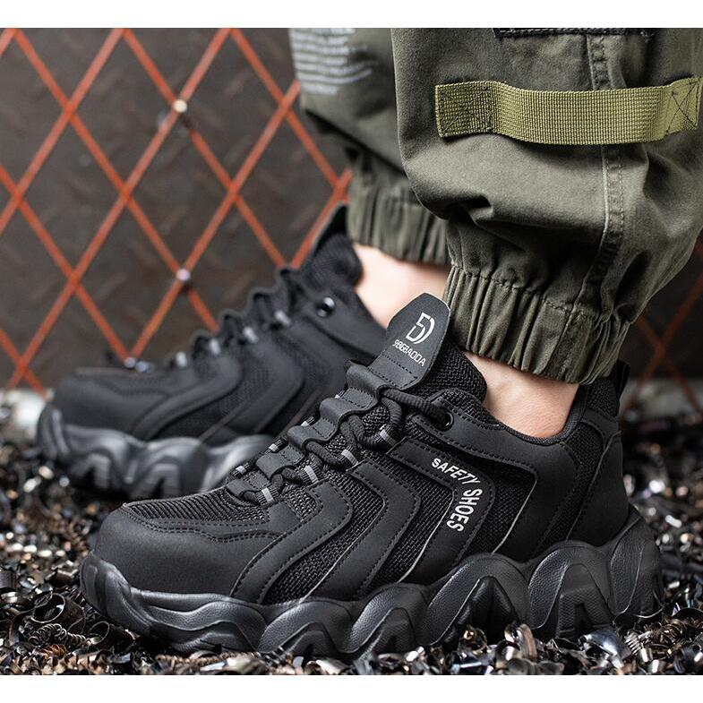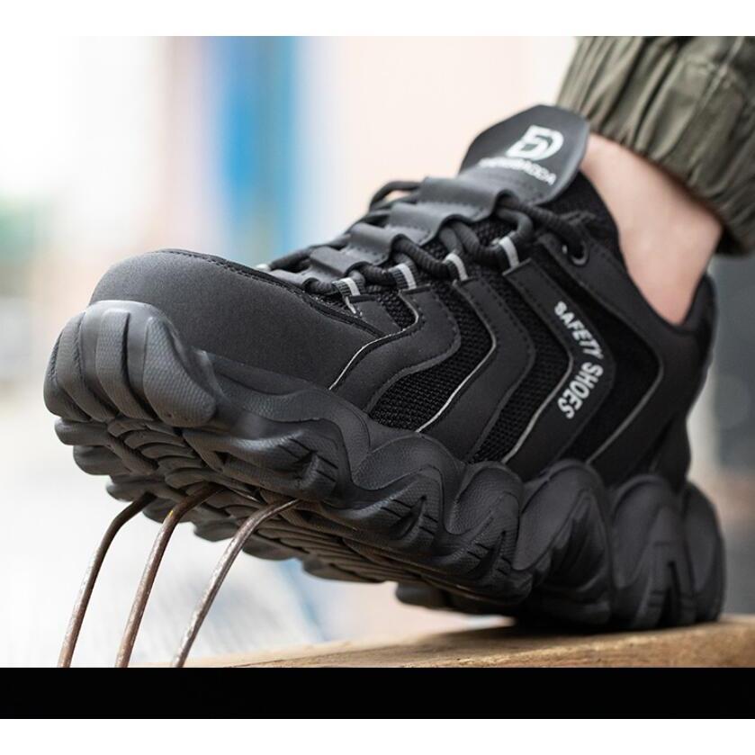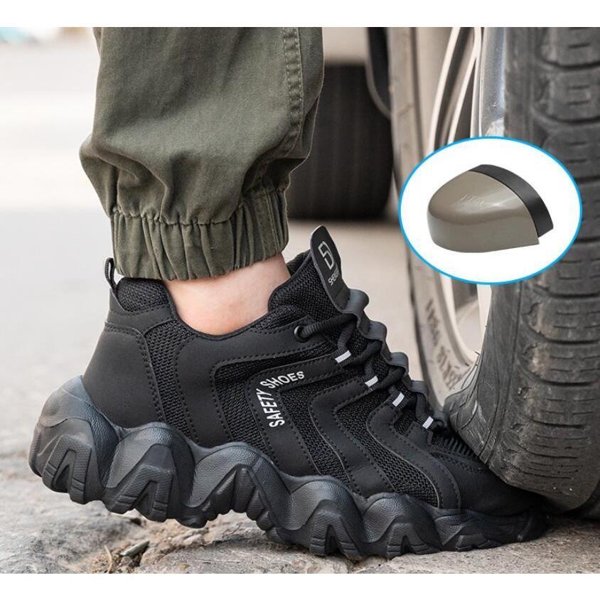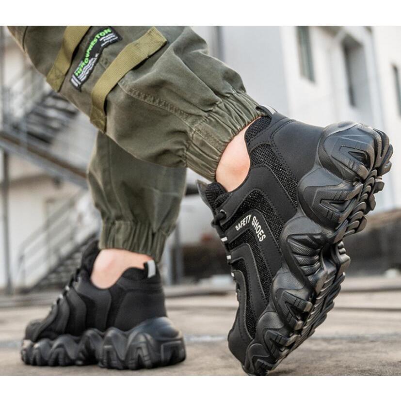 安全性:つま先部分に鋼製の先芯を入れた、金槌や刃物などからつま先を保護できます。靴底はケブラー中底も入れた、釘などの鋭いものから足裏を守ります。靴全体は頑丈で、ソールは耐摩耗性です。 そしてソールは伸縮性があり、作業中に足が疲れません。伸縮性のあるソールは歩くのに役立ちます、そして非常に快適です