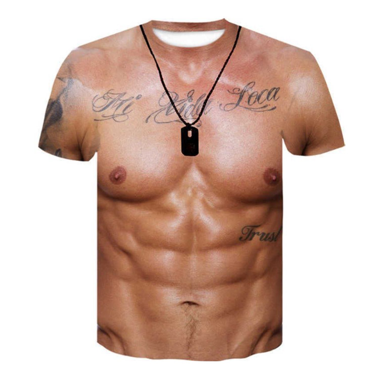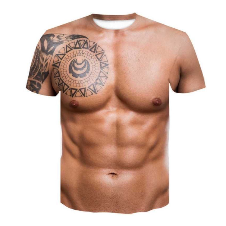半袖tシャツ 腹筋肉 偽腹筋 偽筋肉