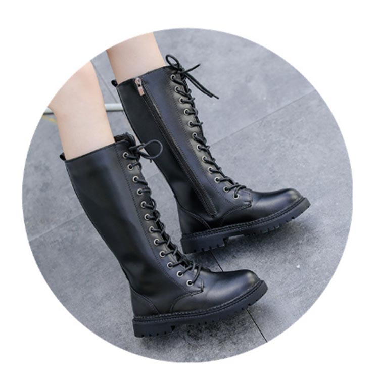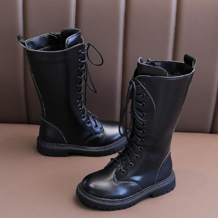 カジュアルな編み上げロングブーツです