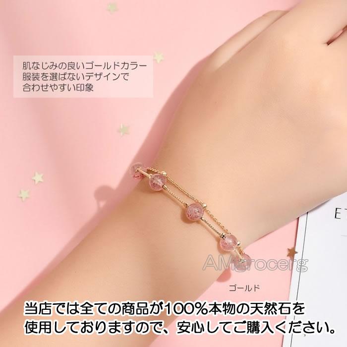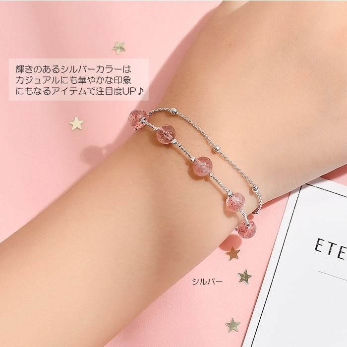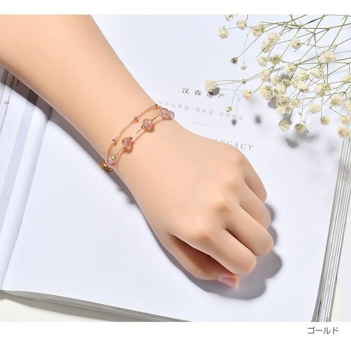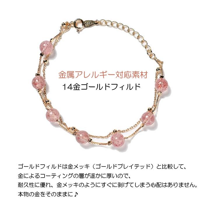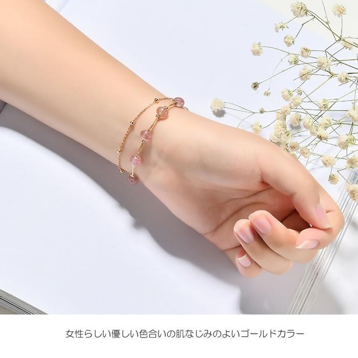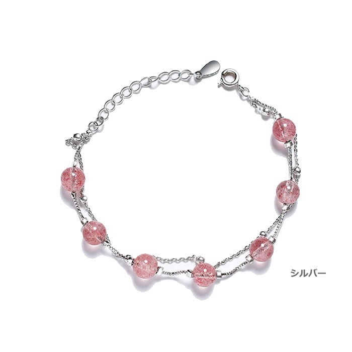 ブレスレット 二連 天然石 ストロベリークオーツ 苺水晶 アクセサリー14KGF 秋冬新作 新生活 シルバー925 パワーストーン 2024