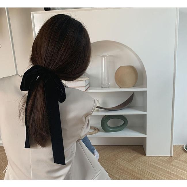 リボン シュシュ 大きめ 髪飾り シンプル おしゃれ 大人 成人式 卒業式 ヘアアクセサリー ヘアゴム 髪留め 和装 袴 振袖 結婚式 ベロア風 シンプル ロングリボン