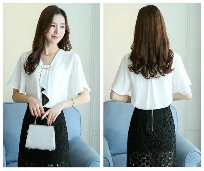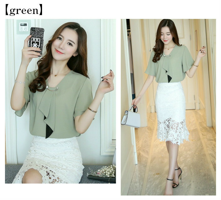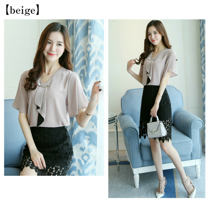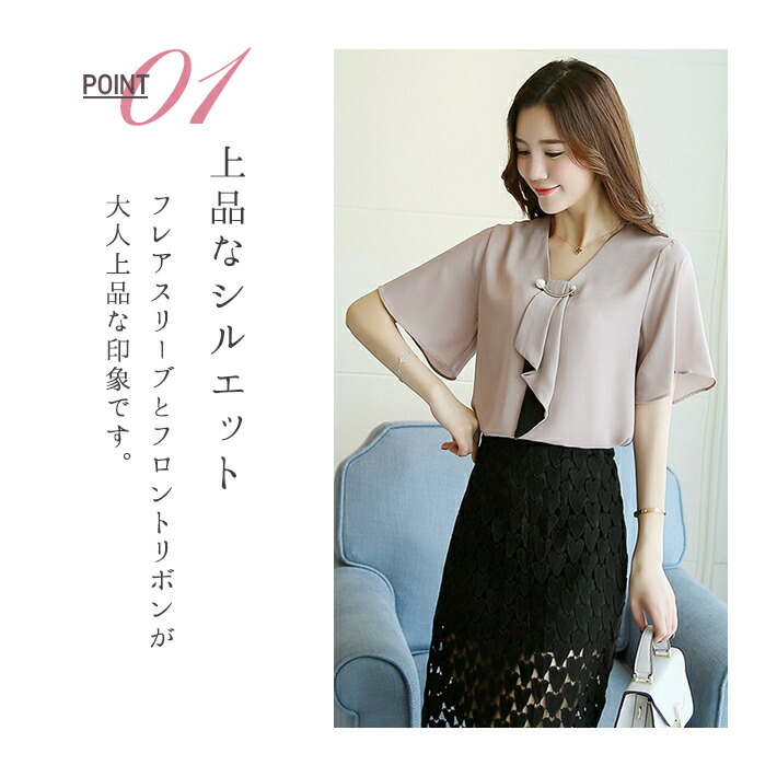 シアースリーブ ドッキングシャツ ボウタイシャツブラウス