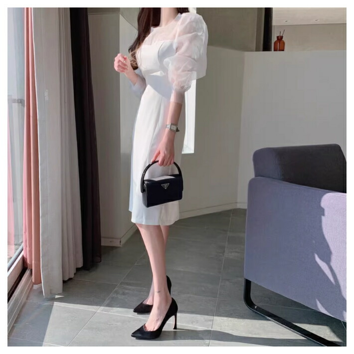 シアースリーブ ドッキングシャツ ボウタイシャツブラウス