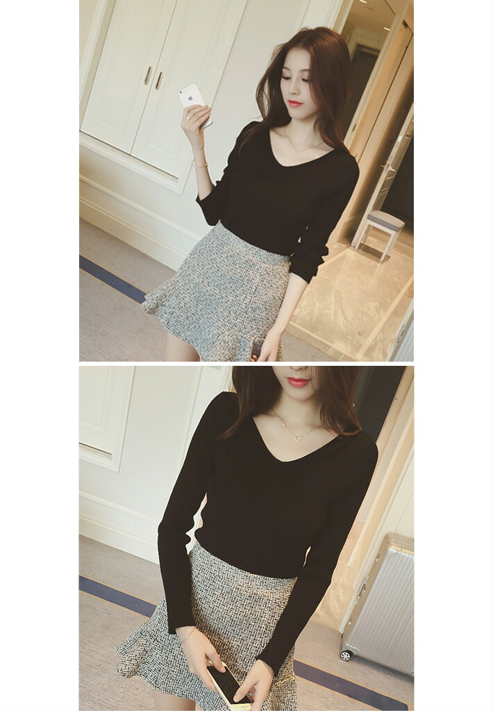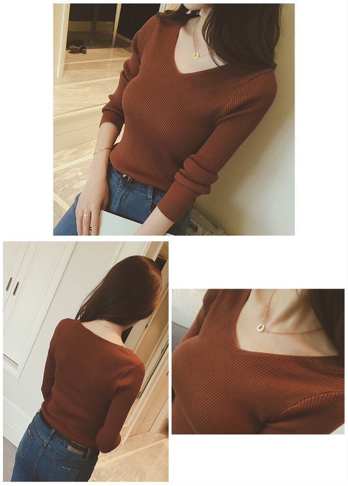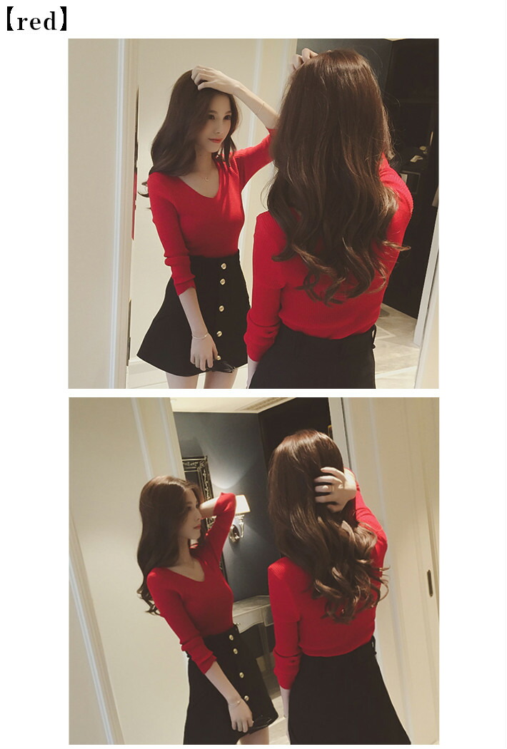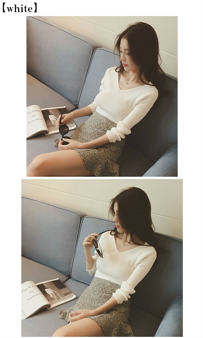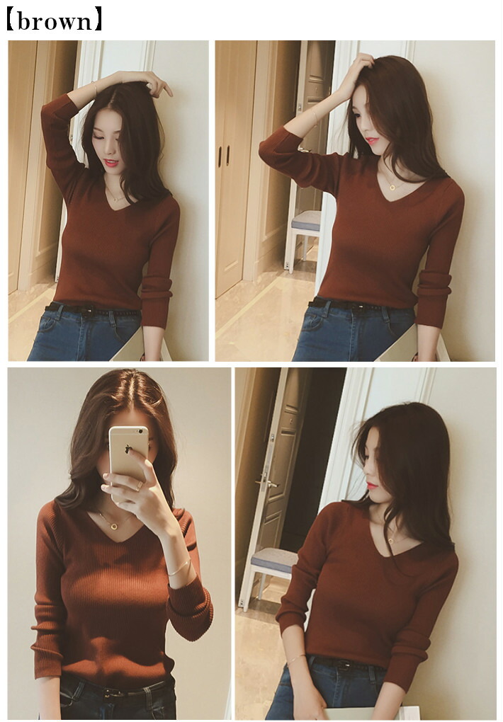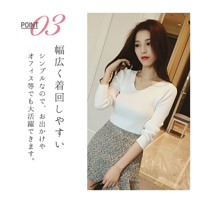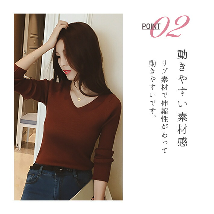 Vネック&リブ編みのデザインが大人きれ