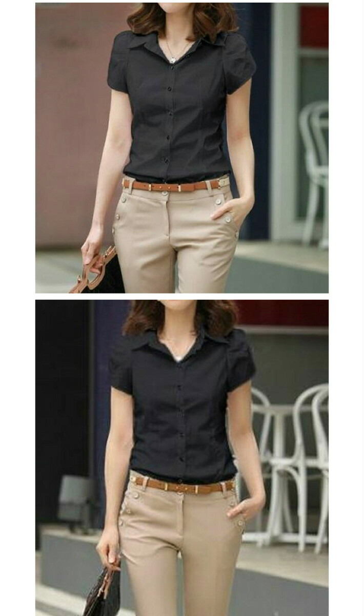 チューリップ袖ときれいめなスタイルでを