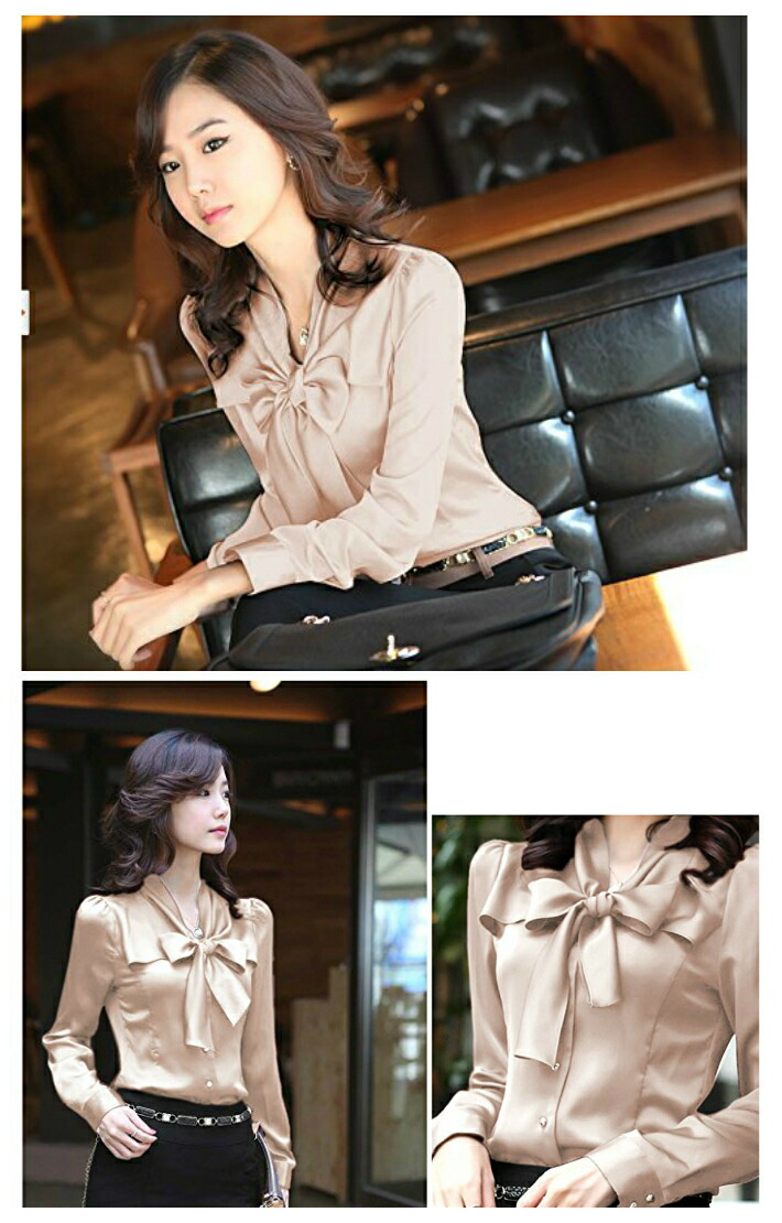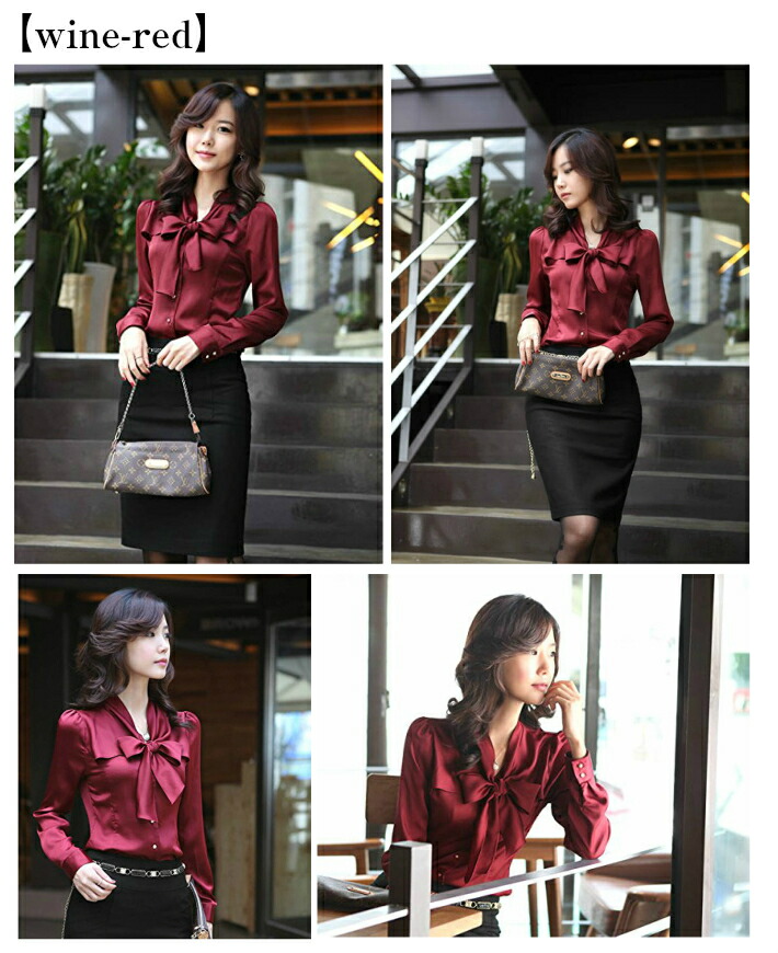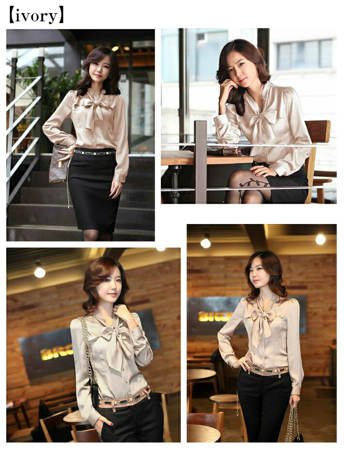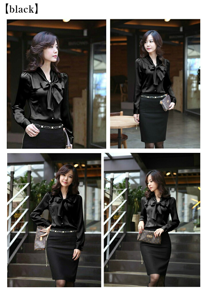 シアースリーブ ドッキングシャツ ボウタイシャツブラウス