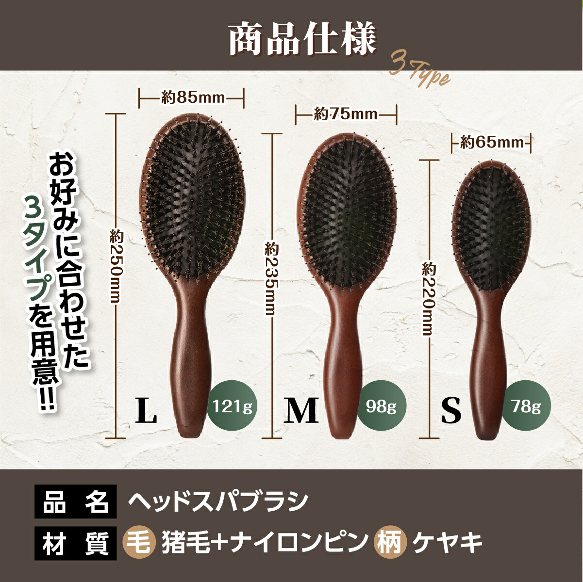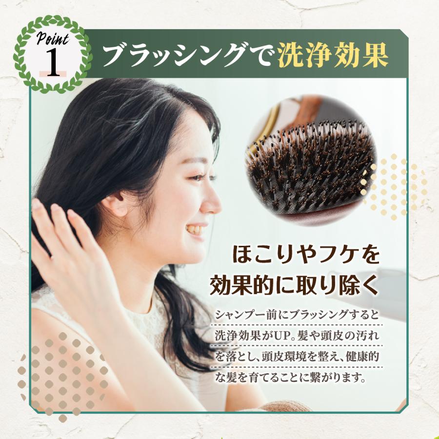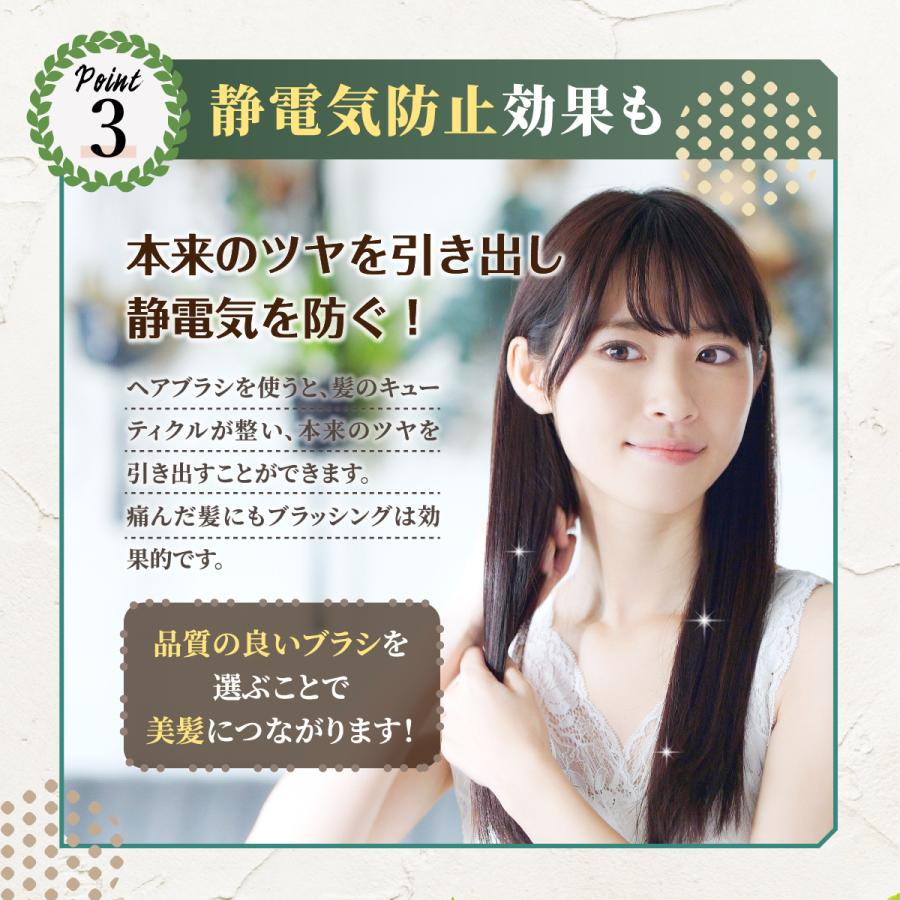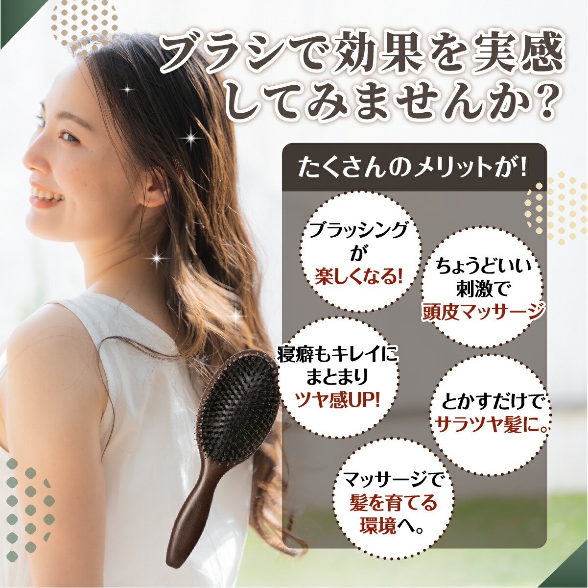 猪毛に含まれた水分と油分で髪のキューティクルを整え、静電気を防止しながら、まとまりやすい美しい髪に仕上げます。