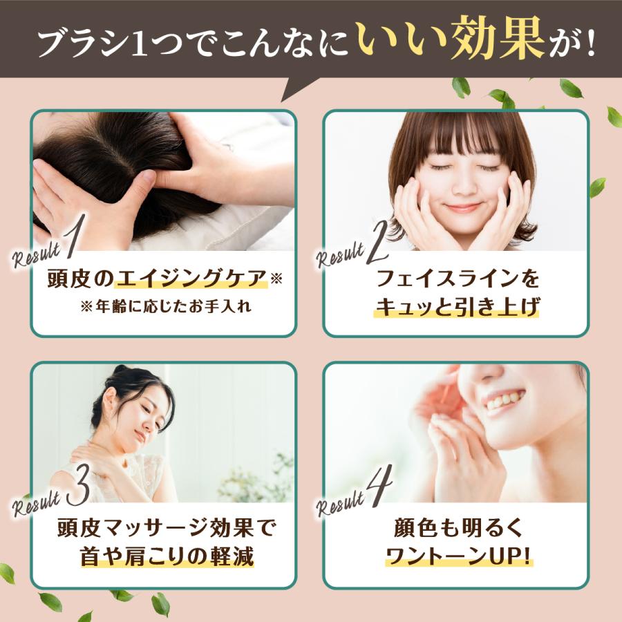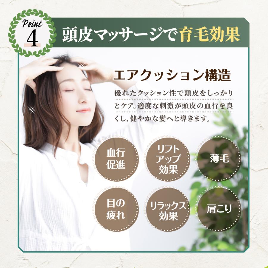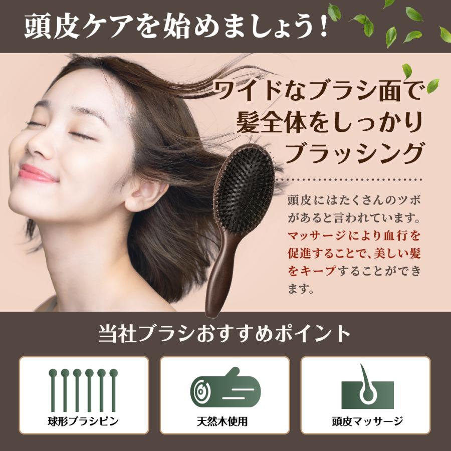 細長いナイロン毛は、デリケートな頭皮を傷めることなく、ブラッシングによる頭皮マッサージ効果を発揮し、ツヤのある健やかな髪を育てる頭皮環境へと導きます。