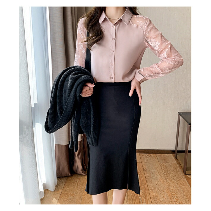 シアースリーブ ドッキングシャツ ボウタイシャツブラウス