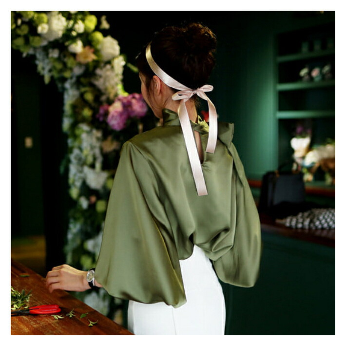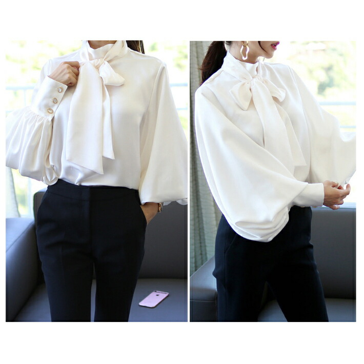 シフォンブラウス シアーブラウス ボリューム袖