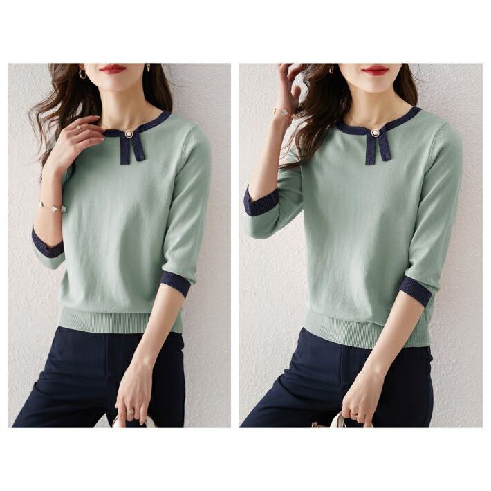 シアースリーブ ドッキングシャツ ボウタイシャツブラウス