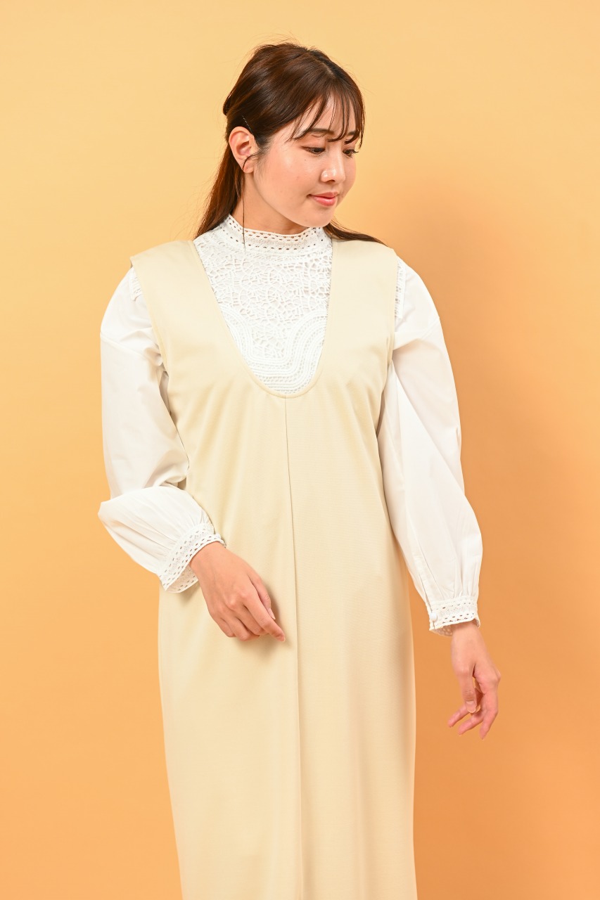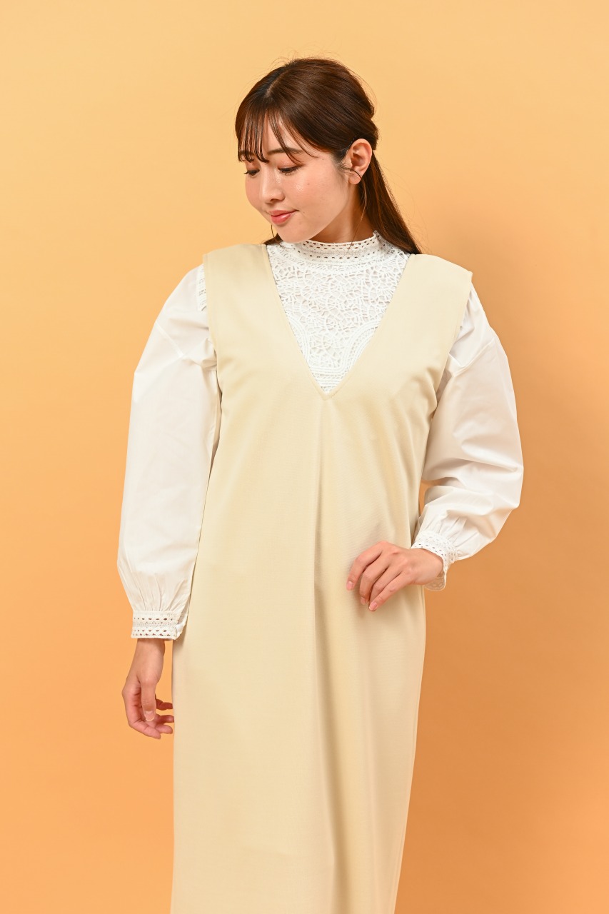 シアースリーブ ドッキングシャツ ボウタイシャツブラウス