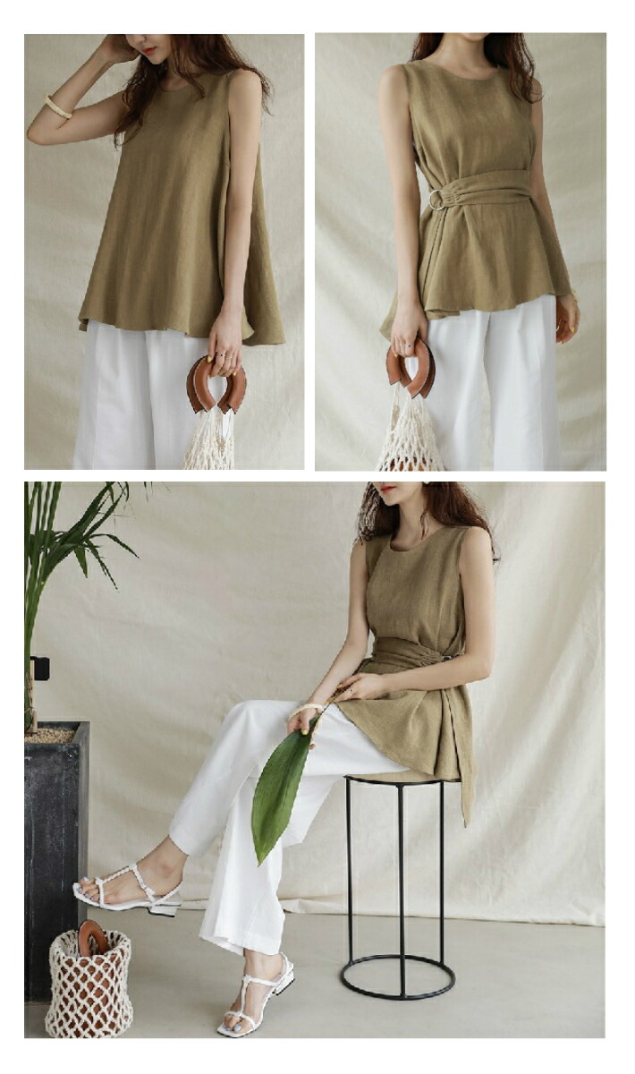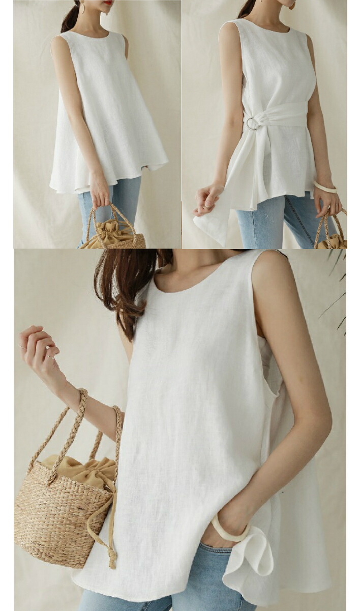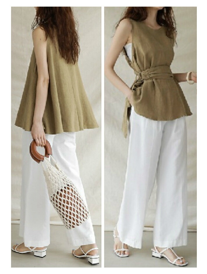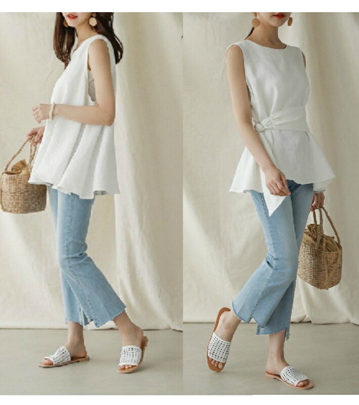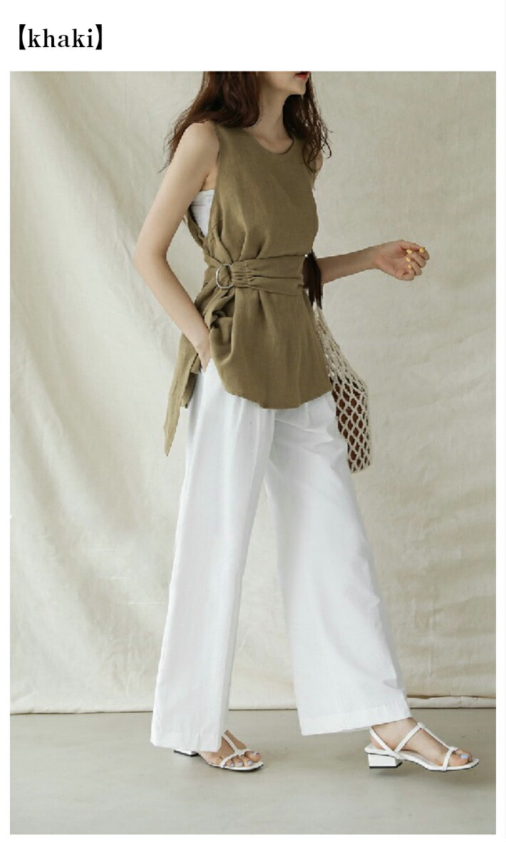 タンクトップレディースTシャツノースリーブUネックロゴプリント
